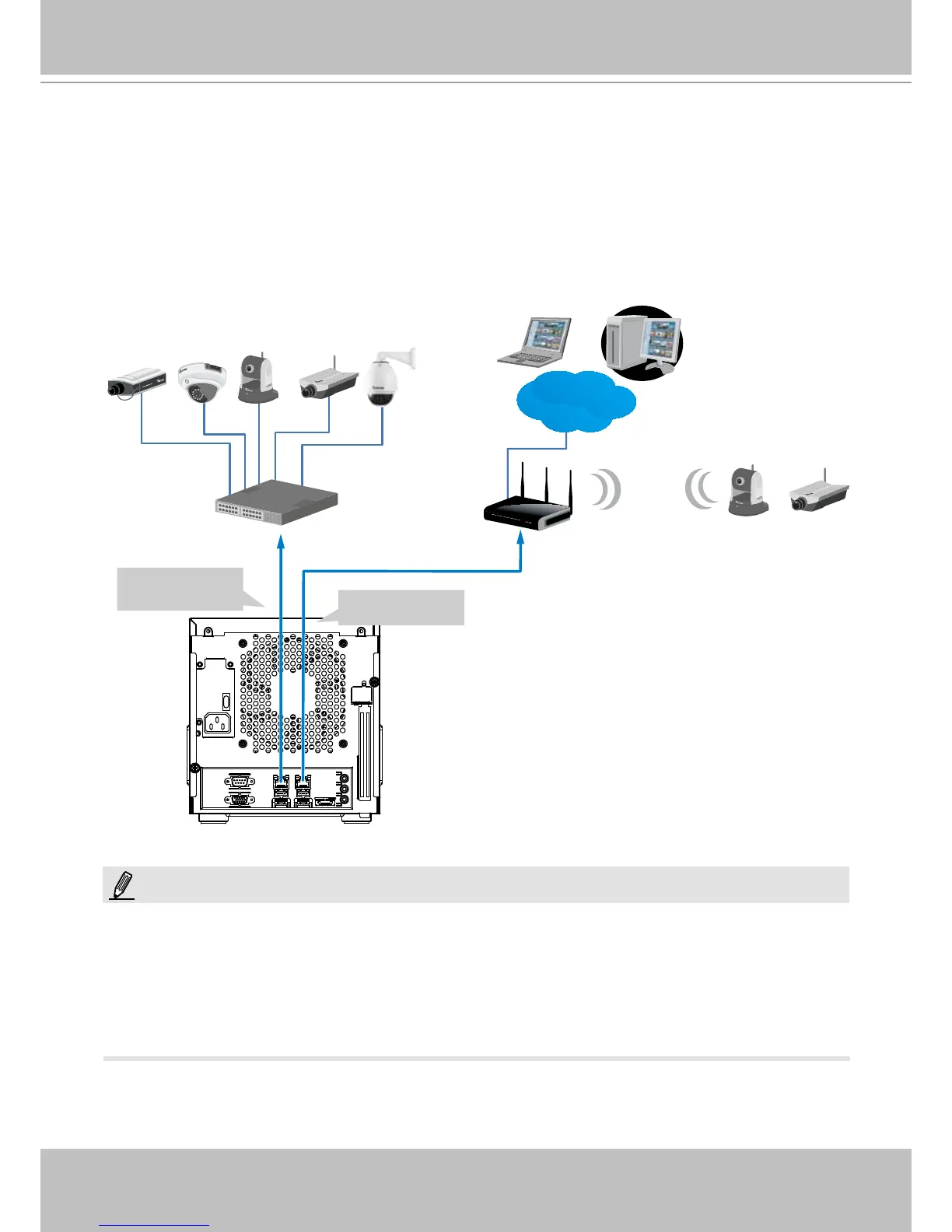 2. If you want to access NVR over the Internet, connect the NVR to the Internet via the WAN