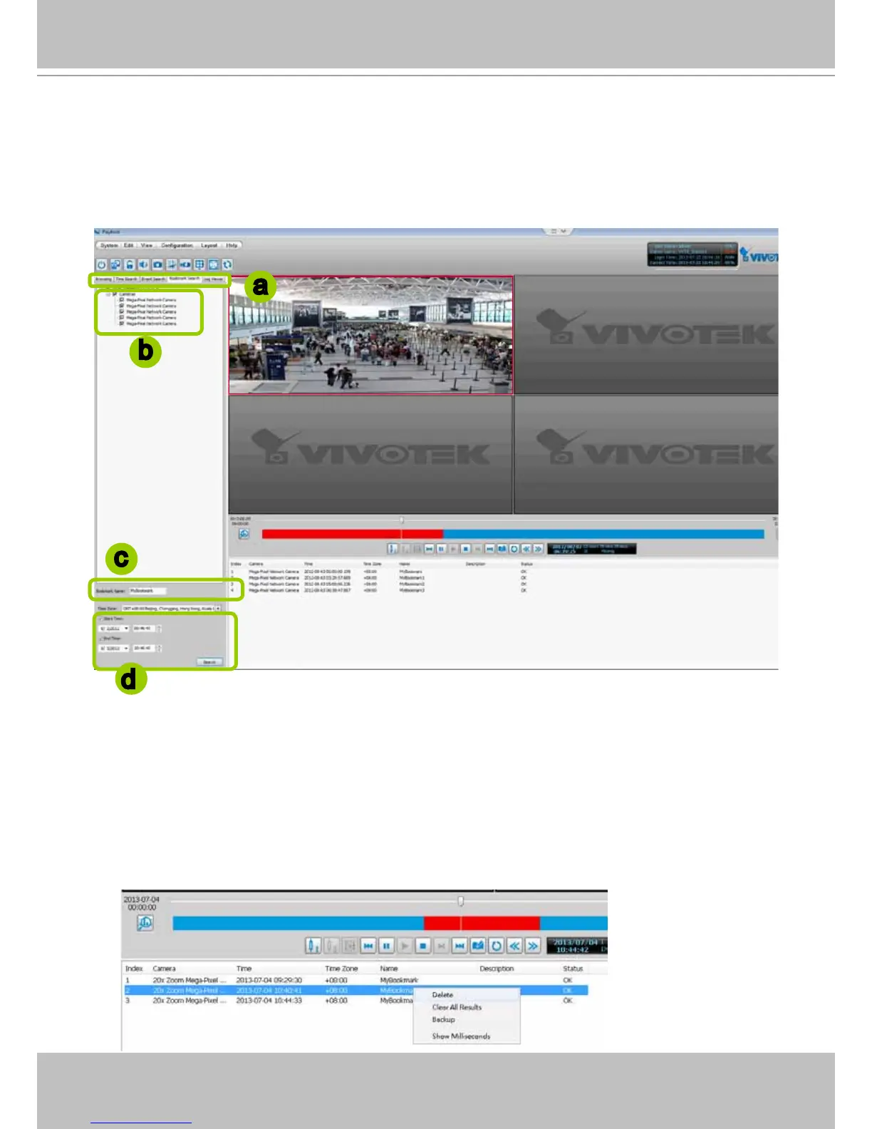 b. Select the cameras which have video clips you have placed bookmarks on.