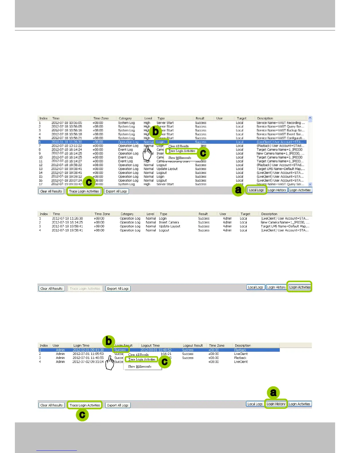 c. Click Trace Login Activities (or you can right-click the selected login/logout item on the list and