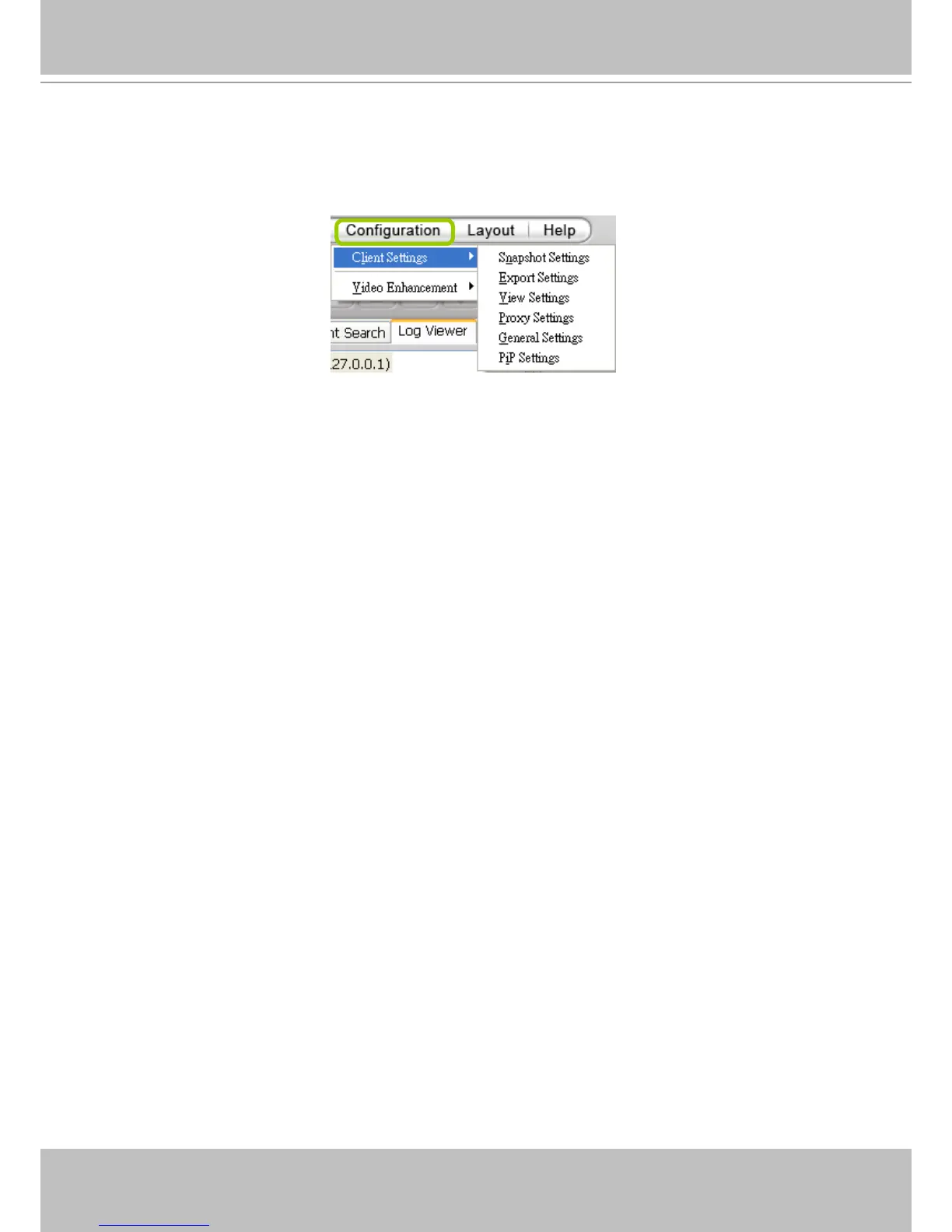 On Client Settings, you can congure Snapshot Settings, Export Settings, View Settings, Proxy