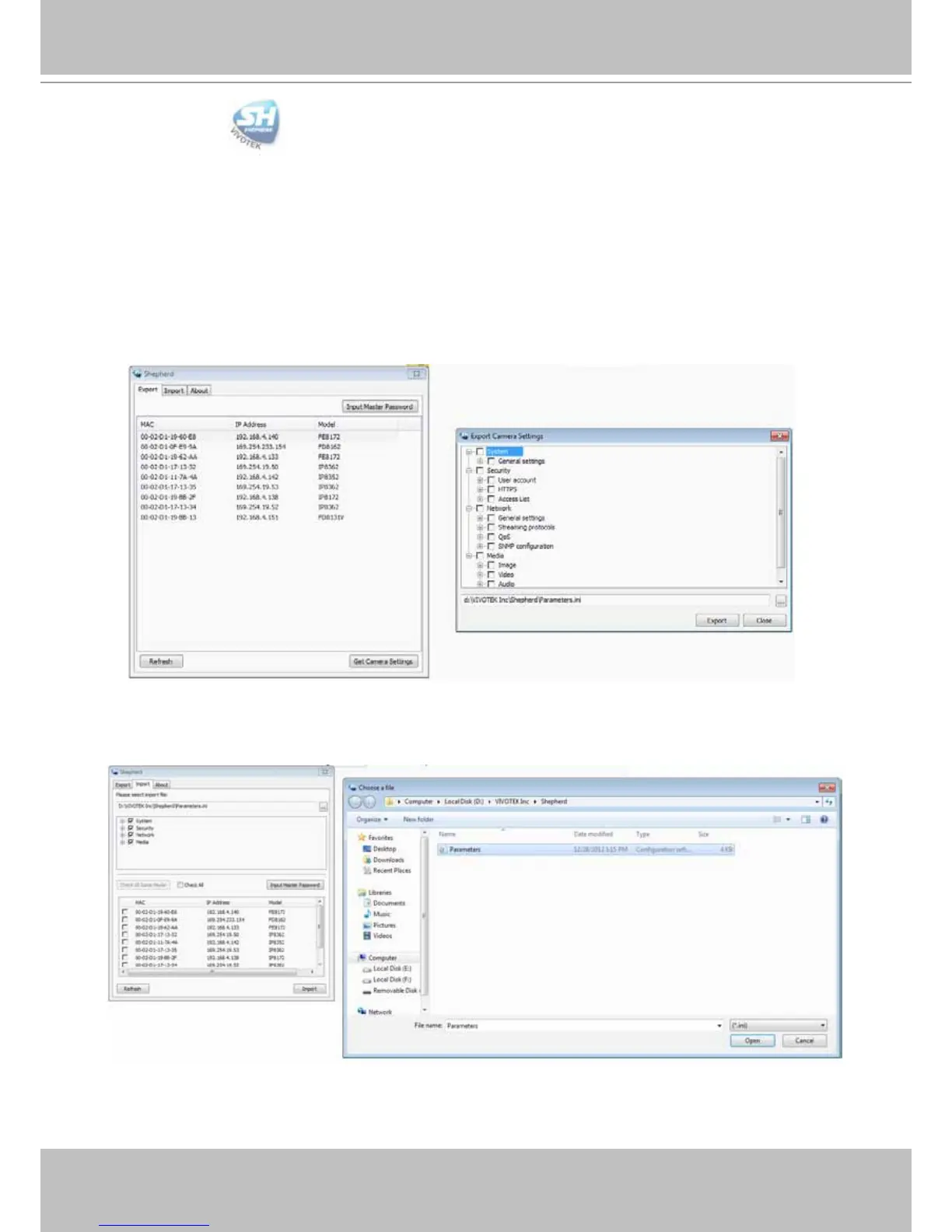 e. Click Export. A Paramters ini le will be created into the D:\VIVOTEK Inc\Shepherd folder.