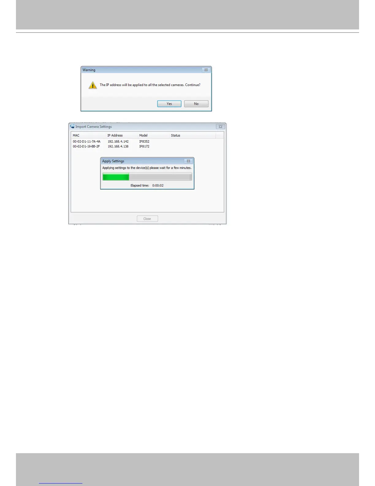 i. A warning message will remind you of the IP address. If you configured a static IP on the source