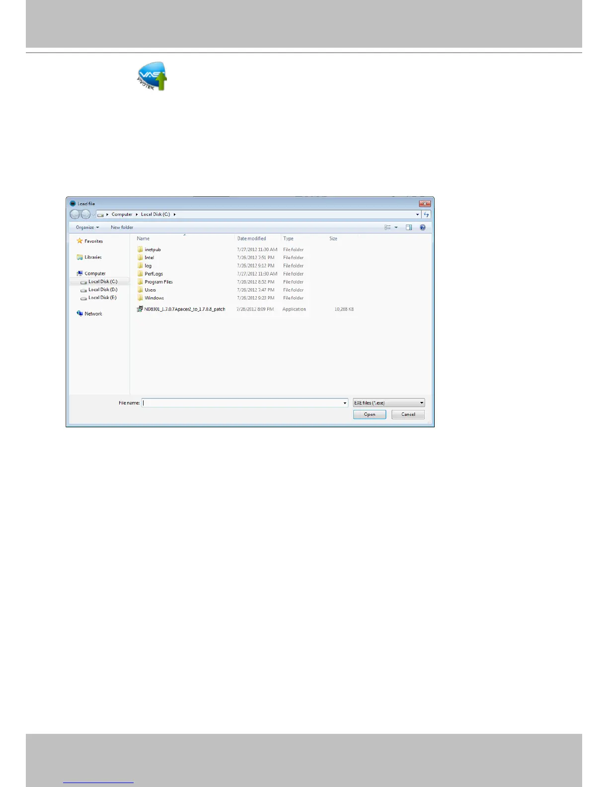 Locate the upgrade package and click open. The upgrade process should be completed within