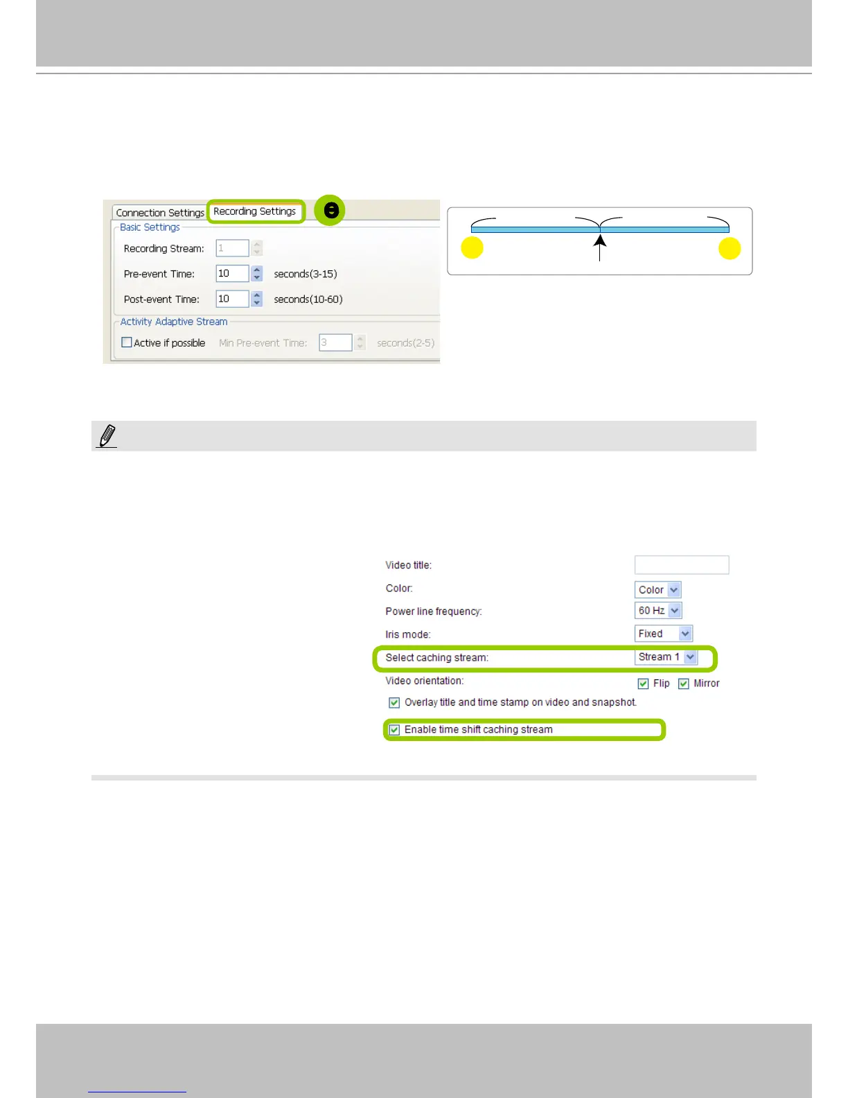 > Audio and Video to activate "Time Shift Cache Stream" on the camera and select a stream source. This will