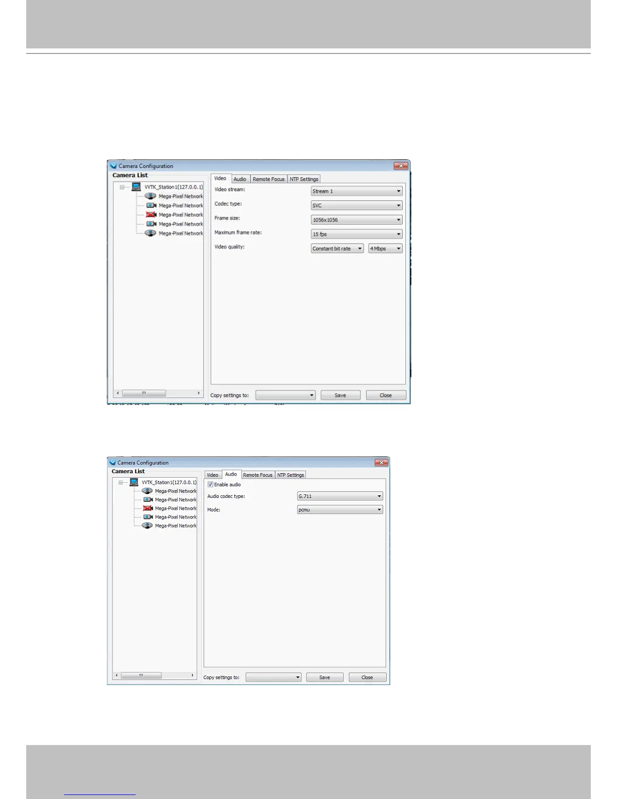 If audio feed is preferred, configure the audio codec type and operating mode in here.