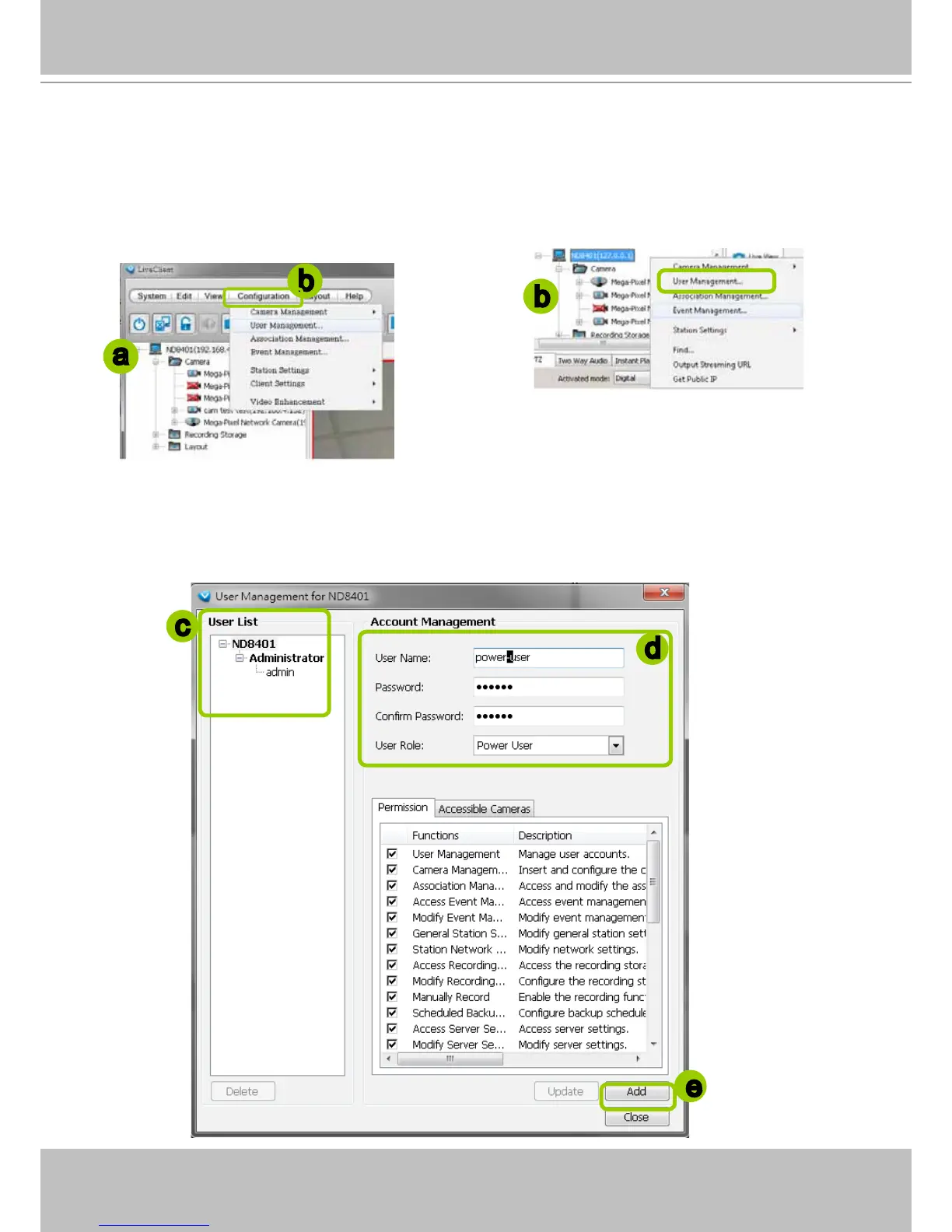 e. Click Add to add the user account to the station. It will be displayed under the User List.