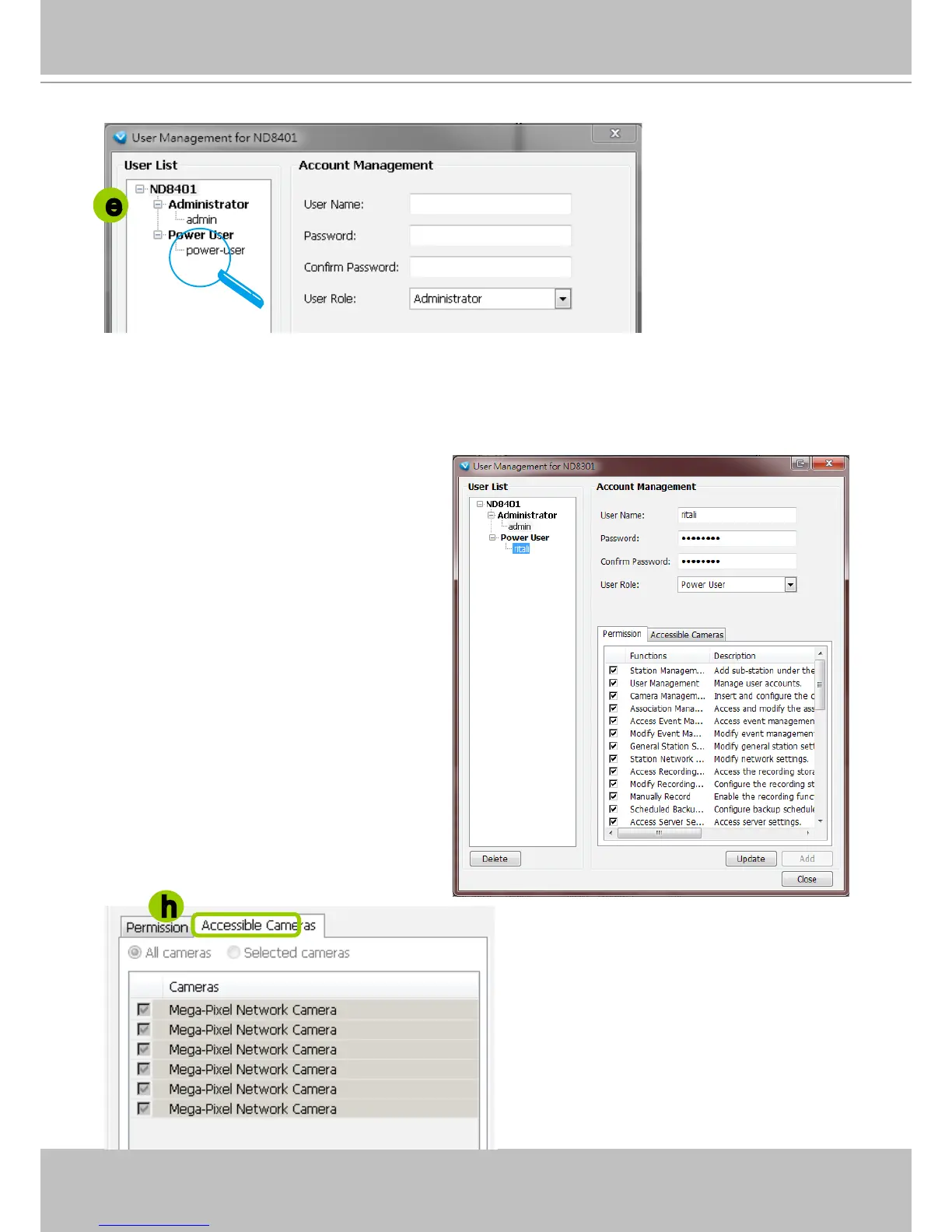 Administrator is granted with all access privileges, while other user roles' permission is limited. If