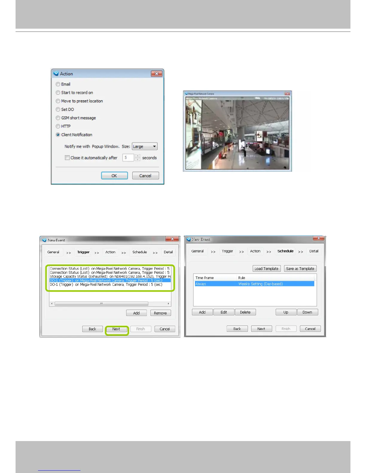 For more information about Schedule Settings, please refer to Recording Schedule Settings on page