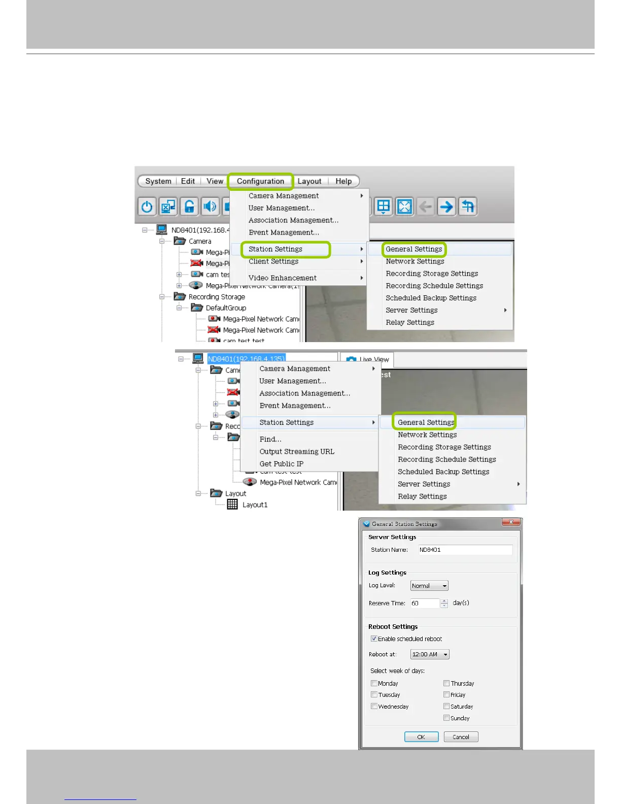 hierarchical management tree and select Station Settings > General Settings). The Station