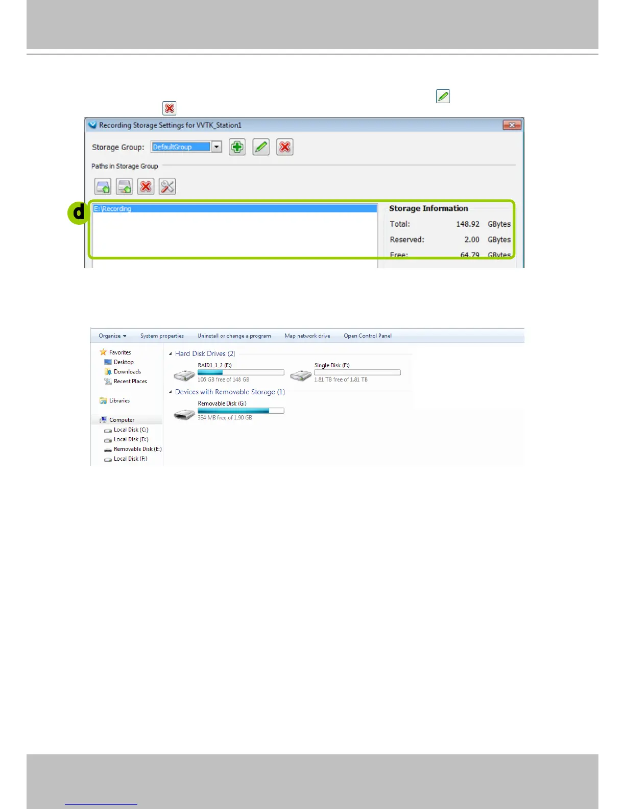d. The default recording path is E:\Recording. The total space and free space of the disk is shown on