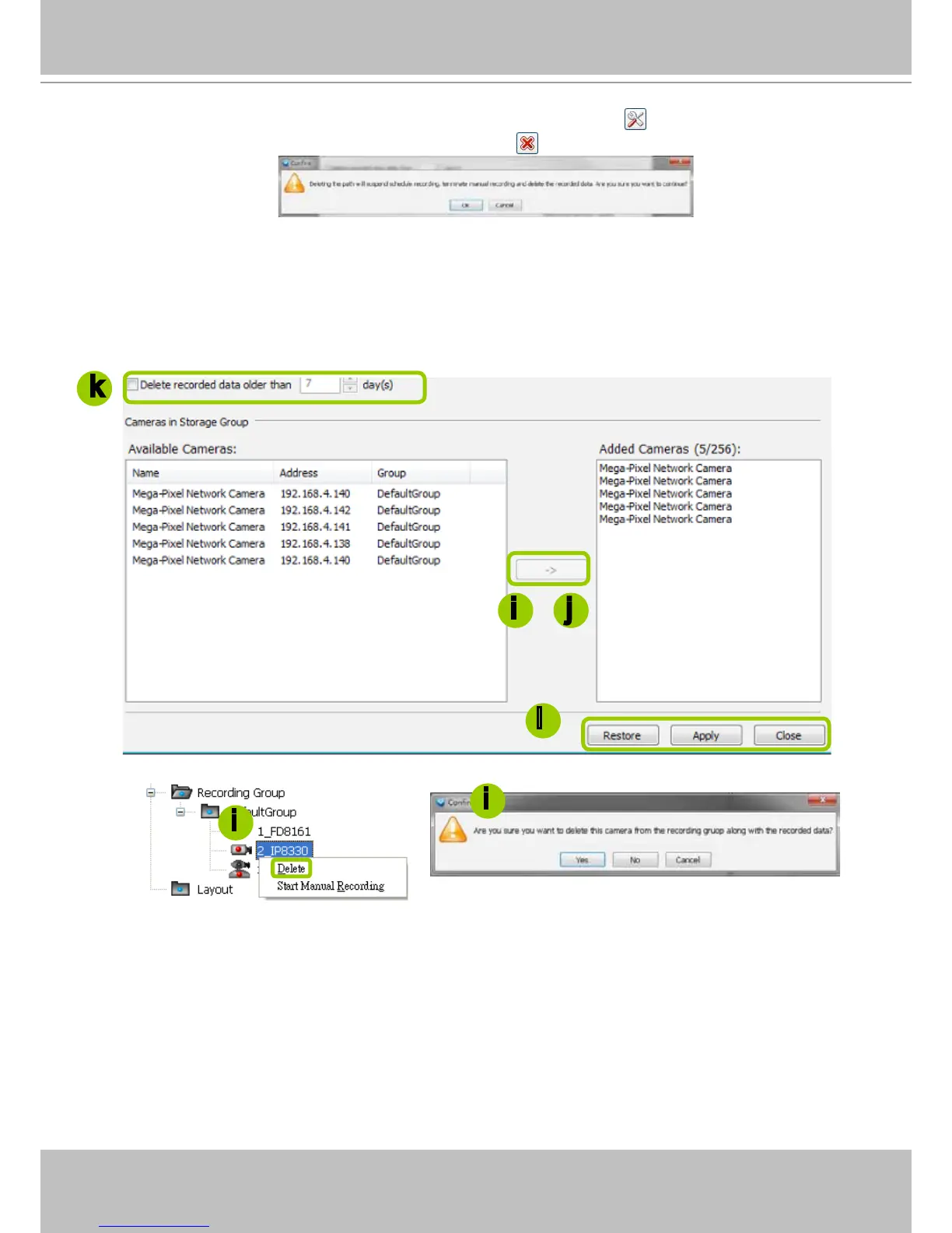 DefaultGroup tree to delete it). Note that a Delete Camera dialog box will pop up. Click Yes to delete