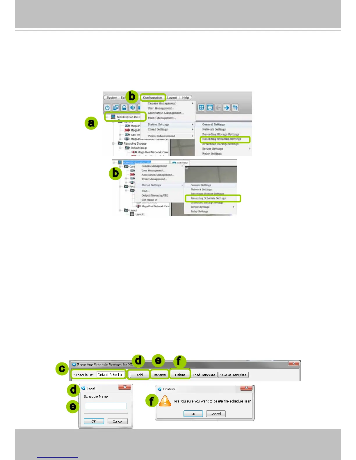 b. Click Conguration > Station Settings > Recording Schedule Settings on the menu bar (or right-