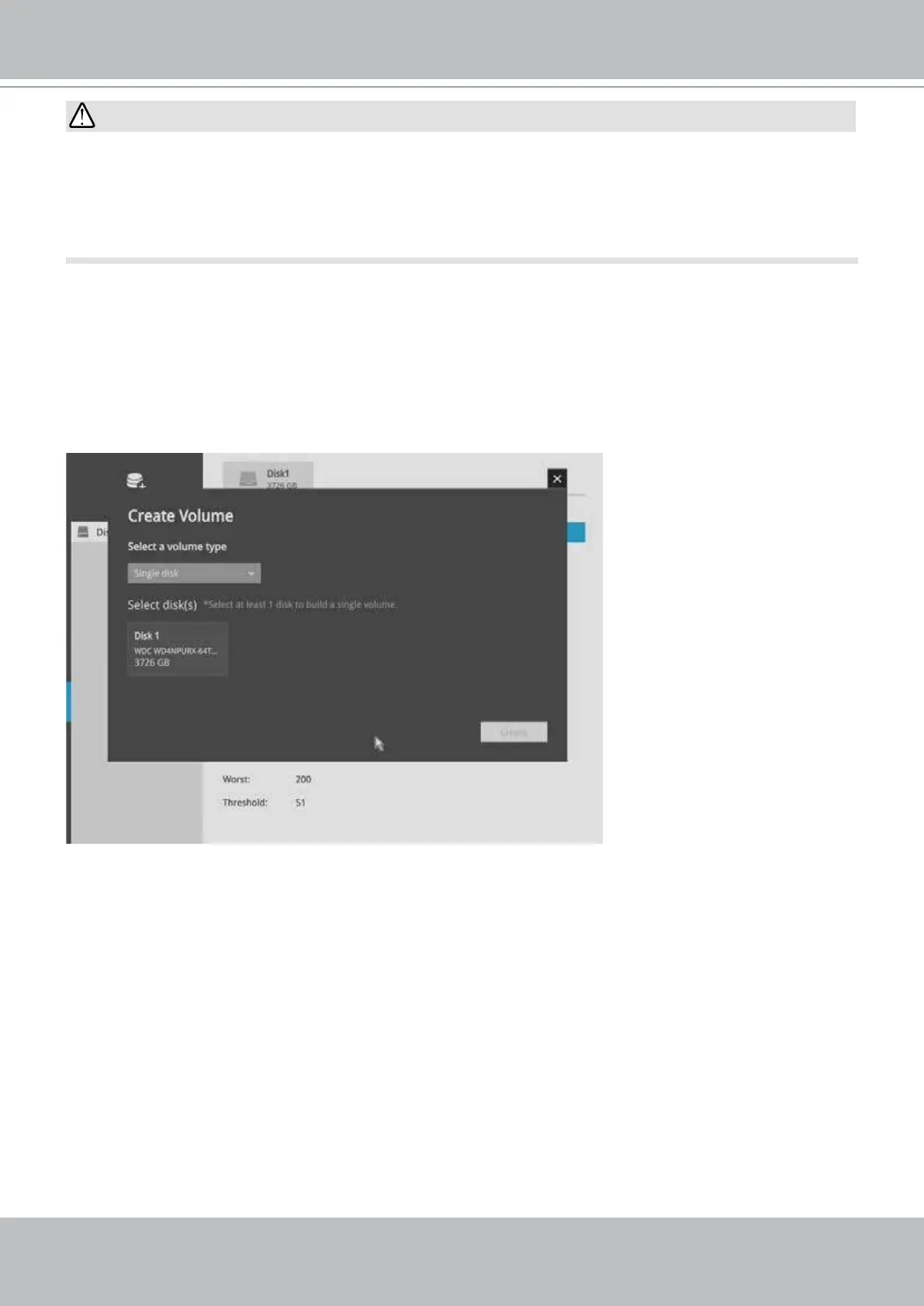 1. Click on the Create Volume button on top of the listed disk drives. The Create Volume