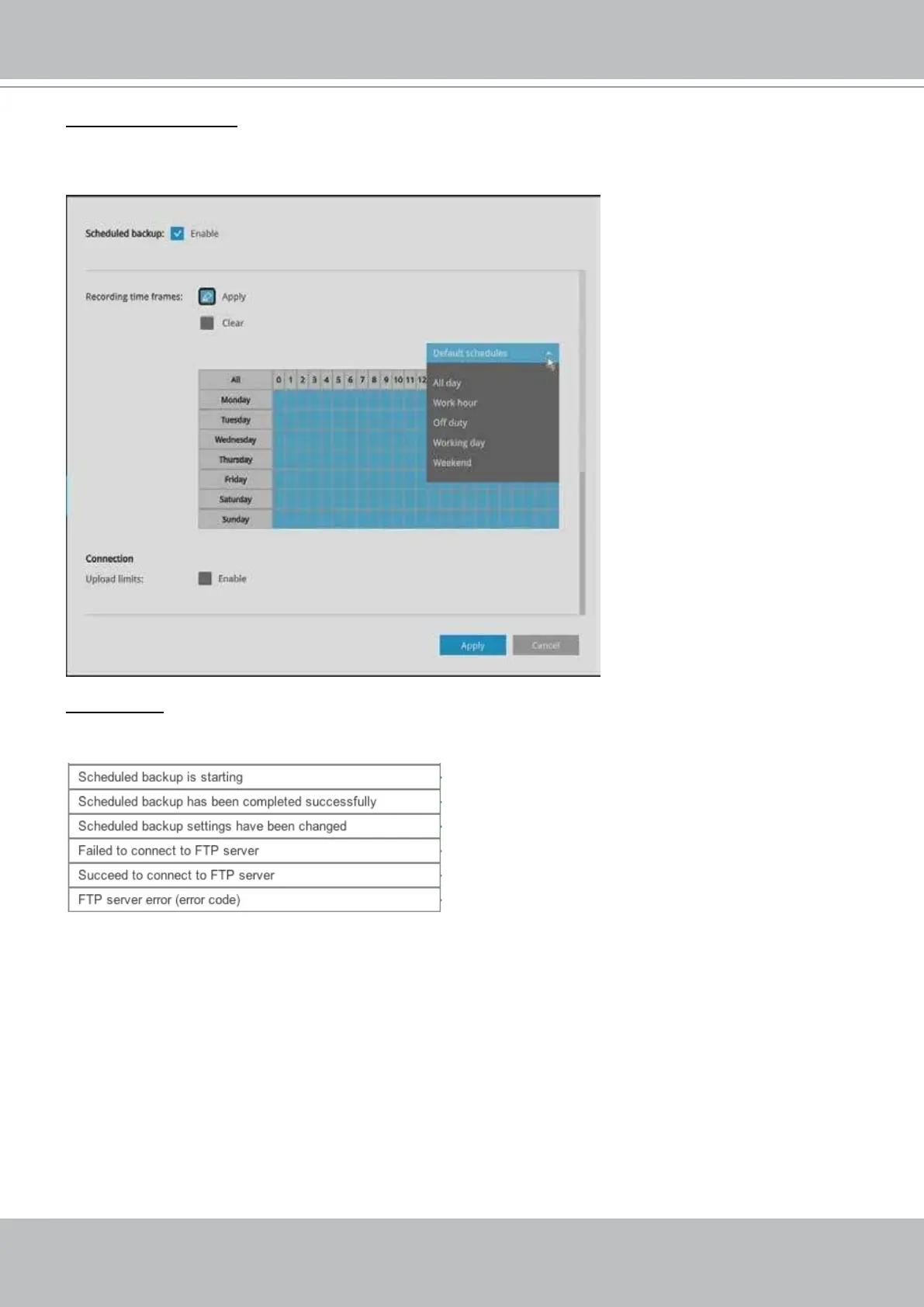 a preset schedule from the pull-down menu on the right, e.g., select to back up only the recordings of the