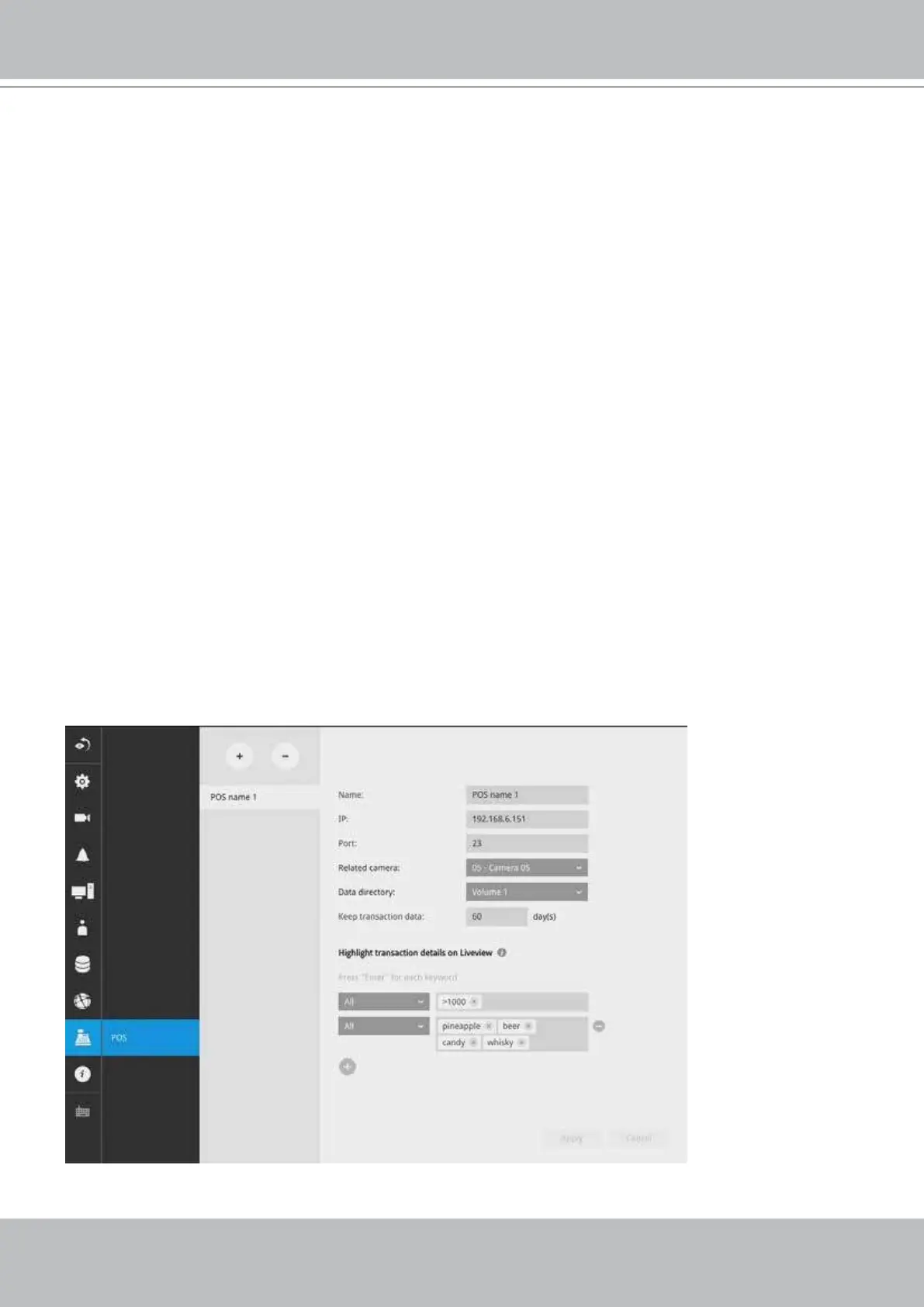 Note that the integration between NVR and a POS machine requires management of POS data.