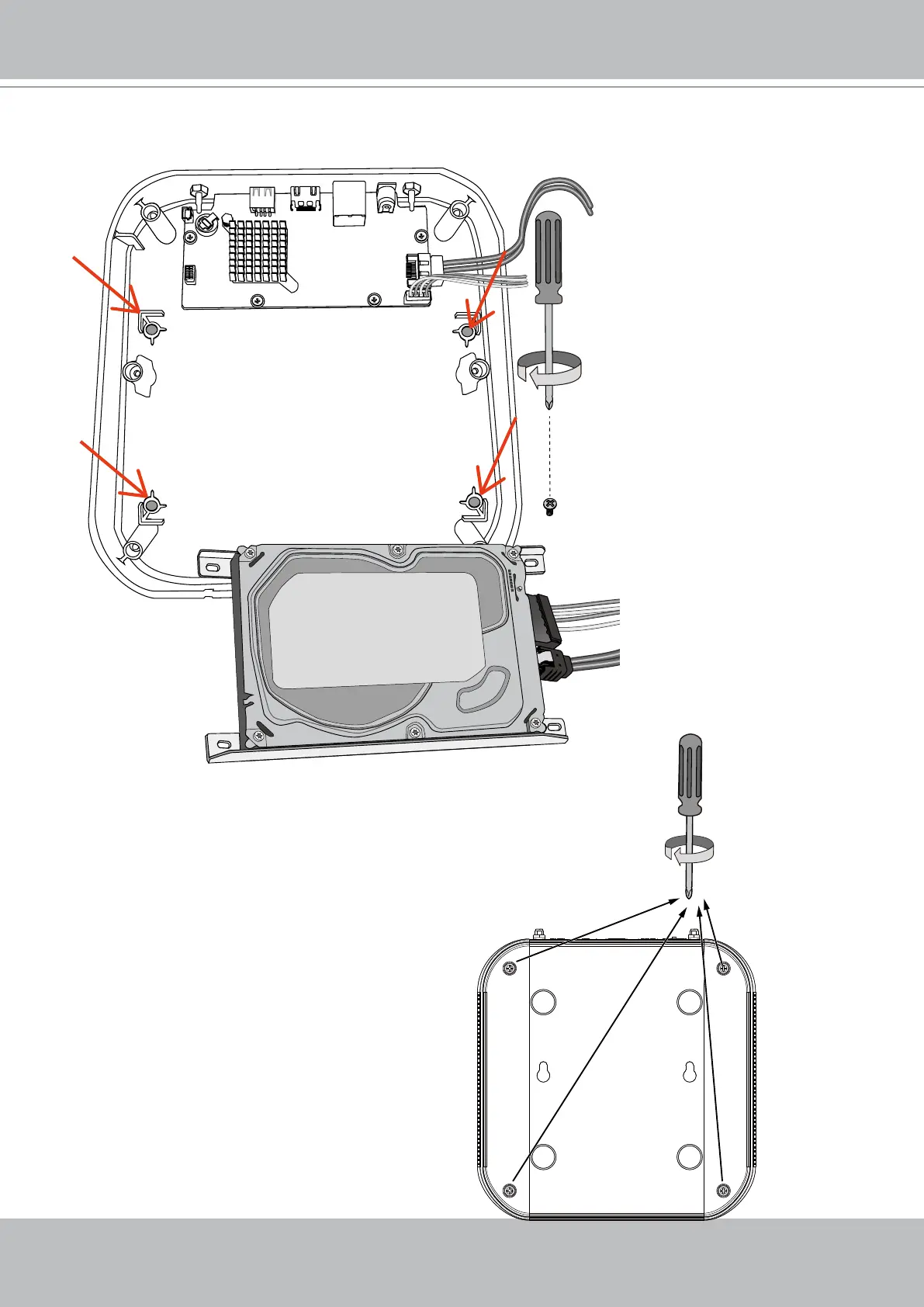 4. Secure the hard drive to the mounting positions in the chassis with its label side facing up,