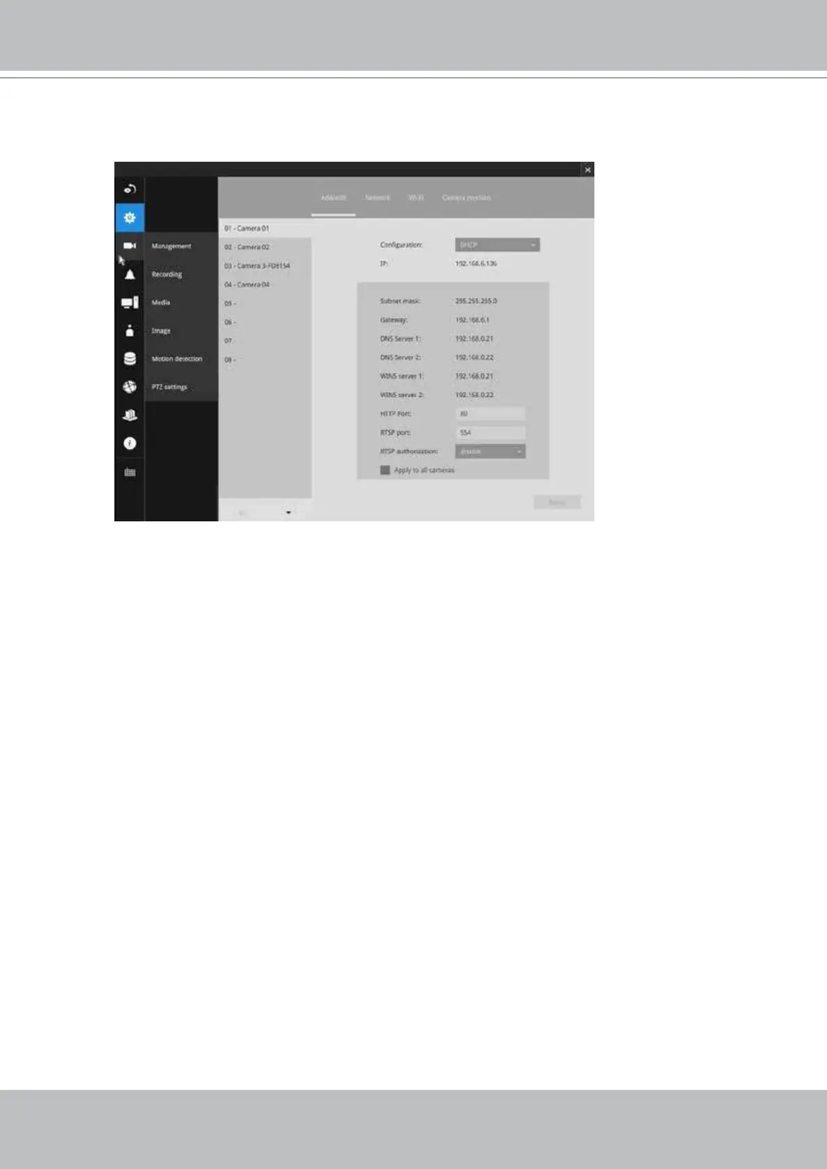 can manually congure static IPs for a single or all cameras. Using static IPs is