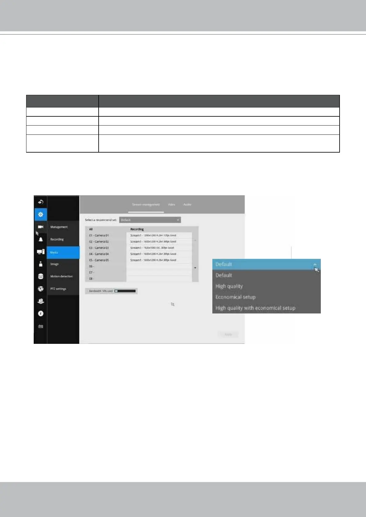 conditions to congure the resolution, image quality, frame rate, and the bandwidth consumption