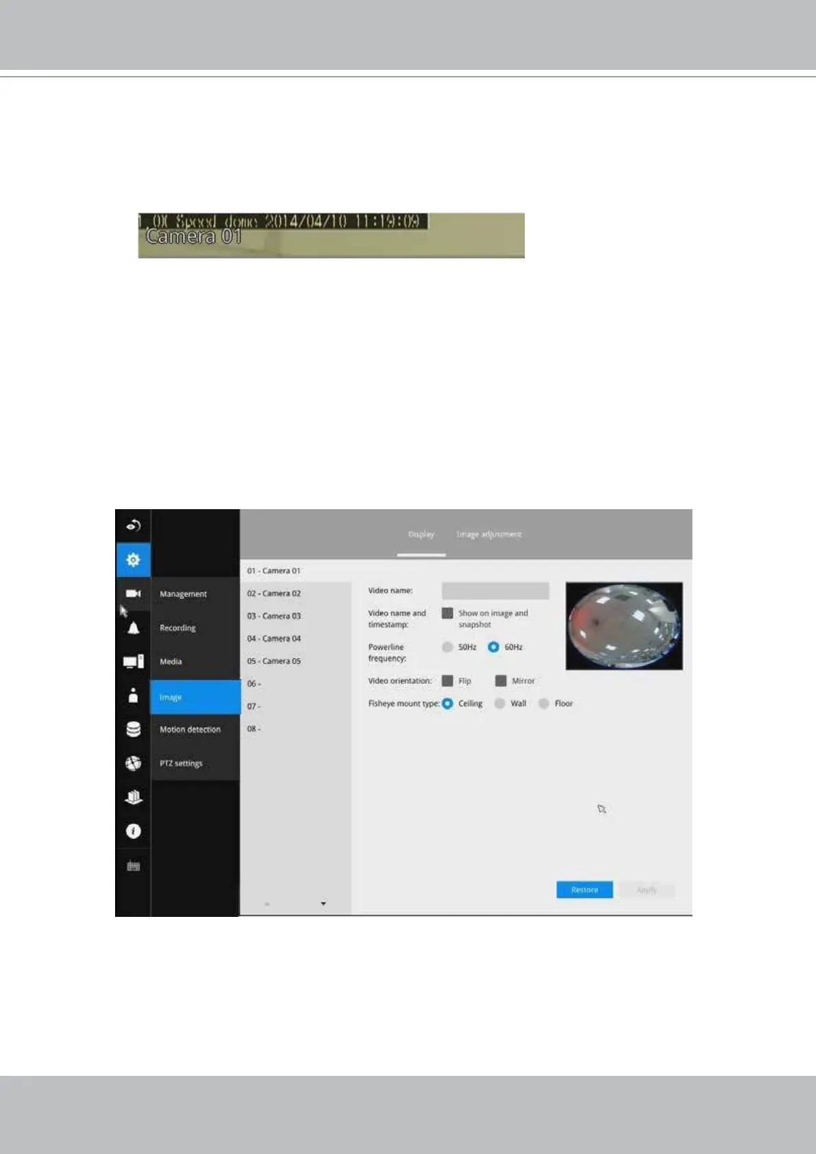 4. Video orientation: select these options if the image from camera needs to be vertically