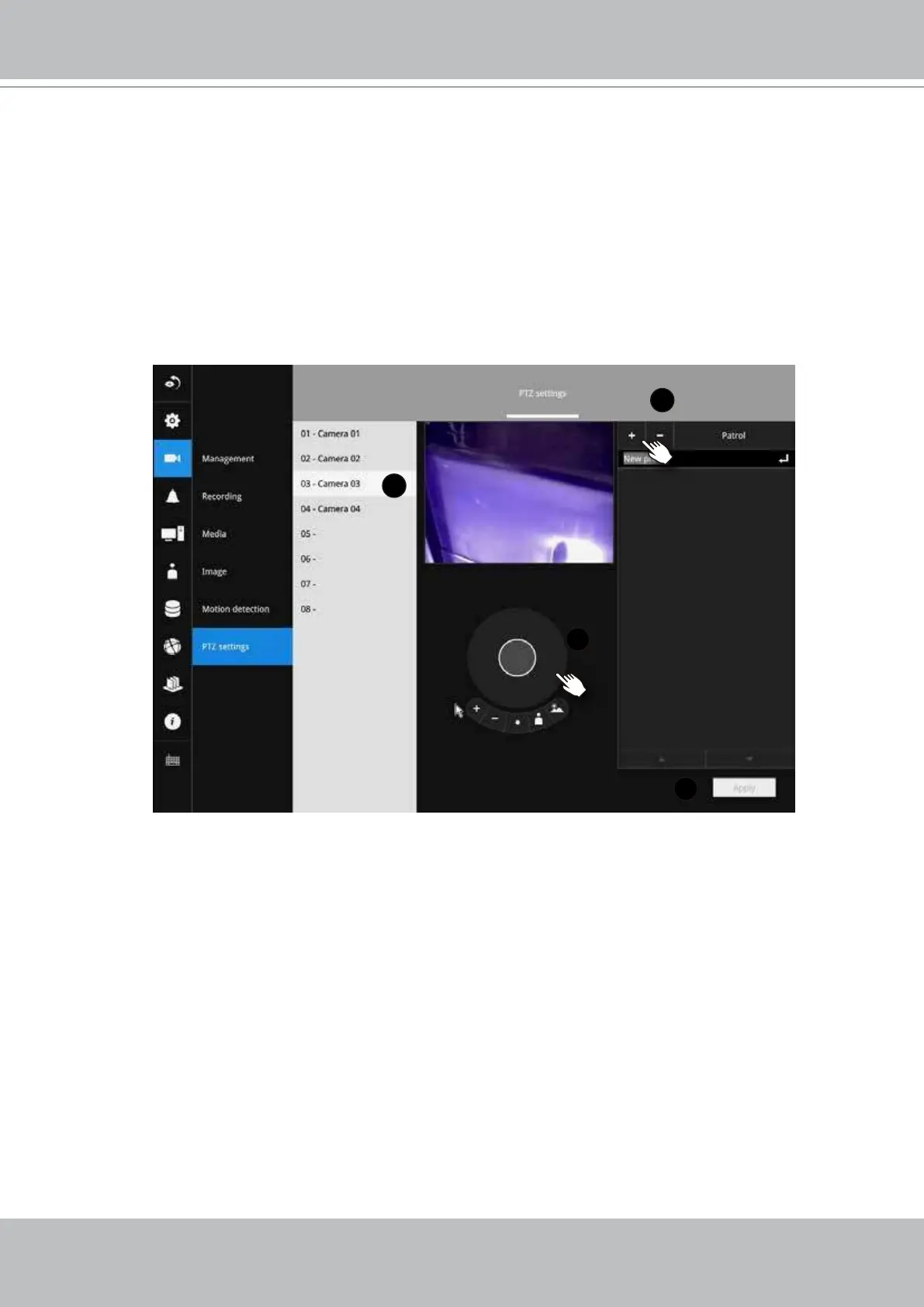 2. Use the PTZ panel to move to a eld of view where you want to designate as a