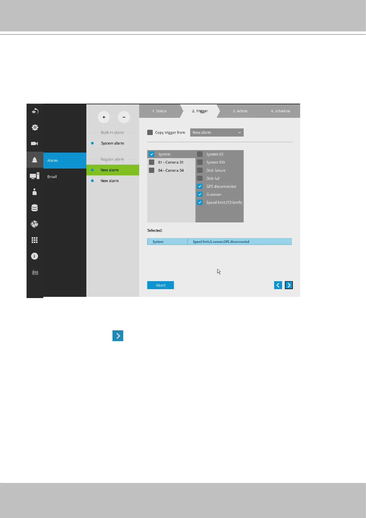 3. On the Trigger window, select system triggering conditions, or one or more cameras by