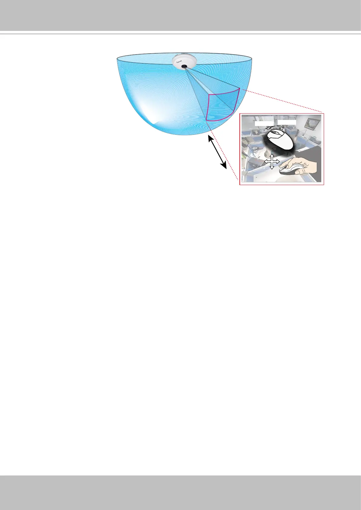 in or out (using the mouse wheel or PTZ panel) or travel through to other areas within the hemisphere