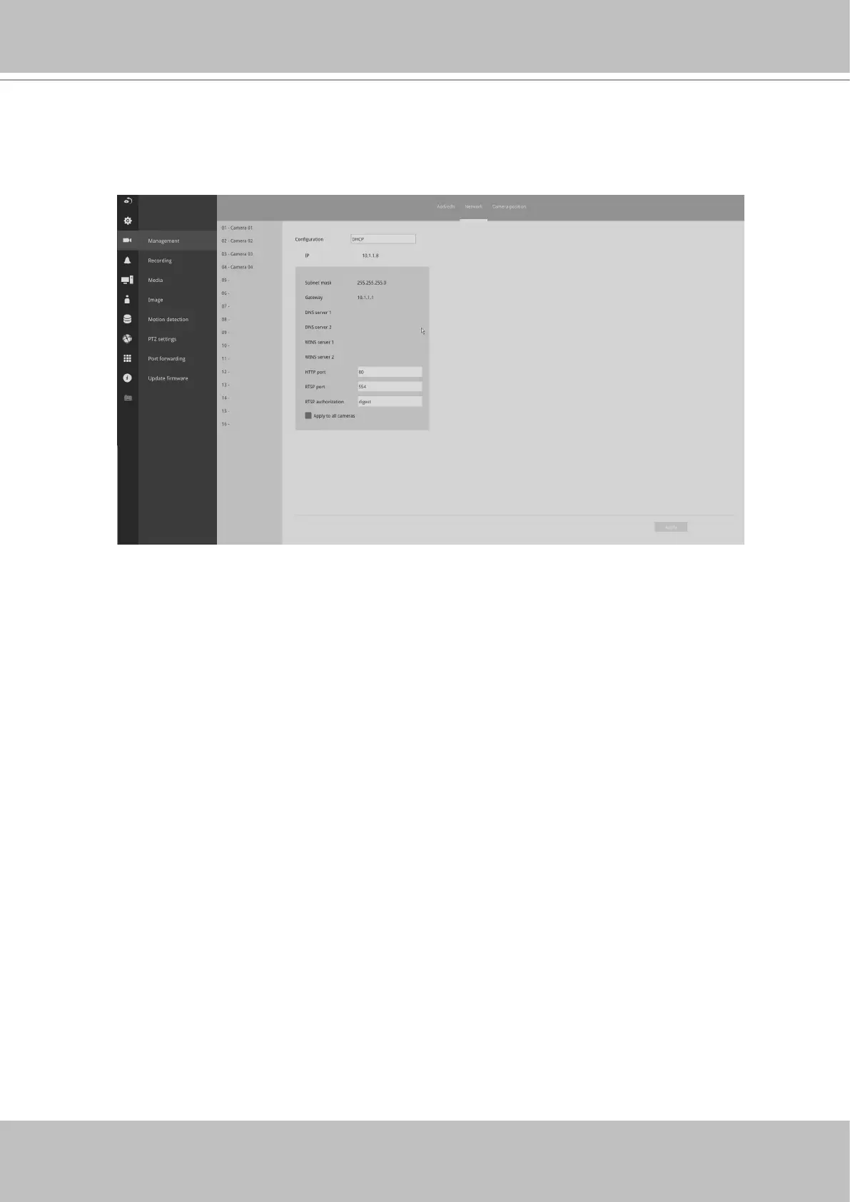 can manually congure static IPs for a single or all cameras. Although the NVR