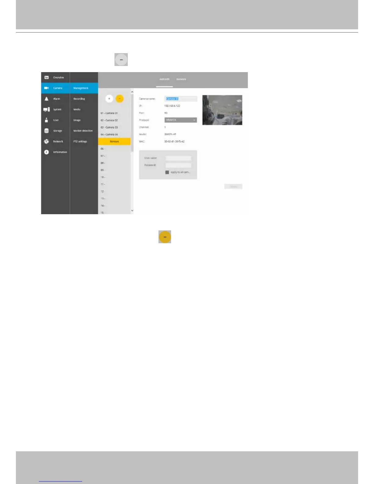 3. Click on the Remove message. The camera should then disappear from the camera list. The
