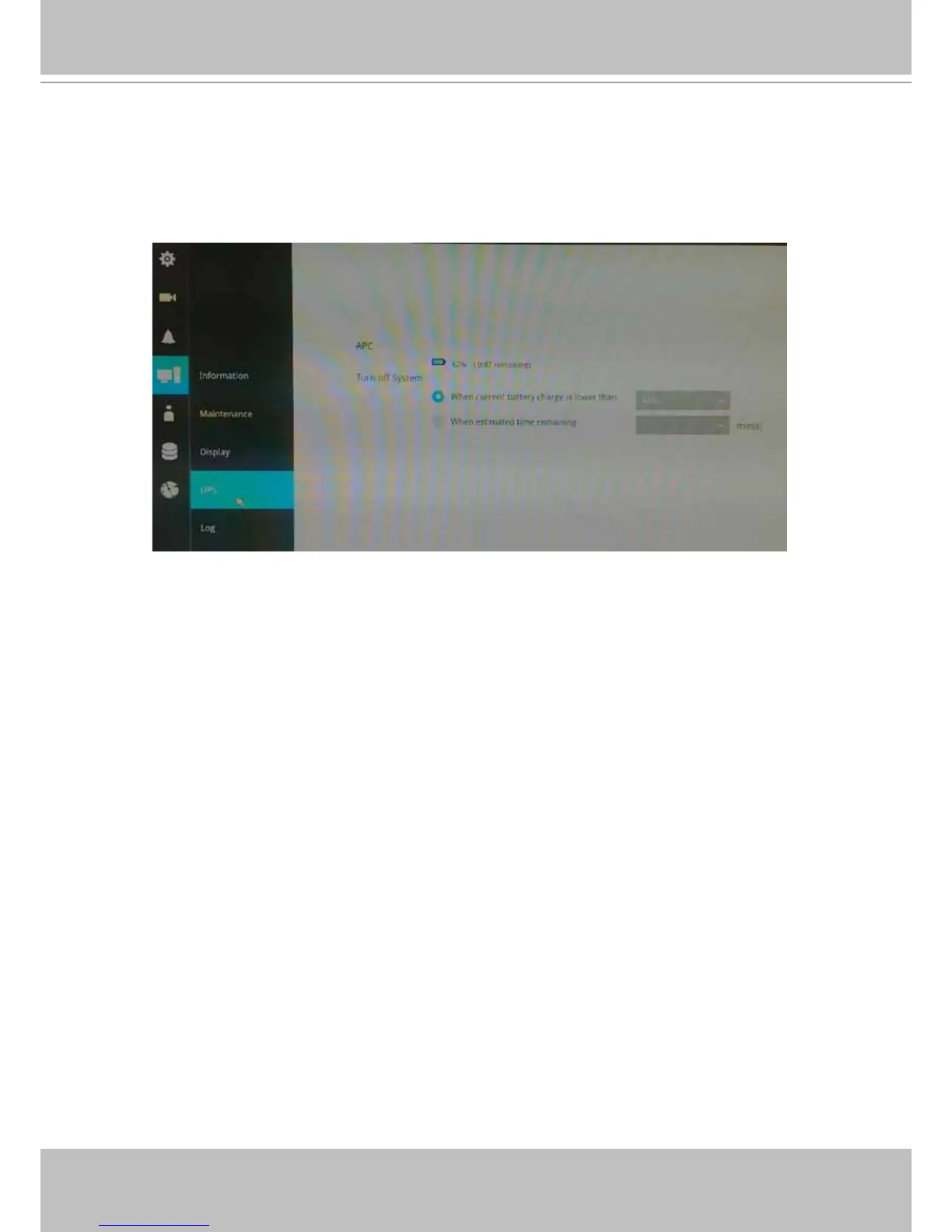 On this page, you can congure the system to gracefully shut down when UPS battery is lower