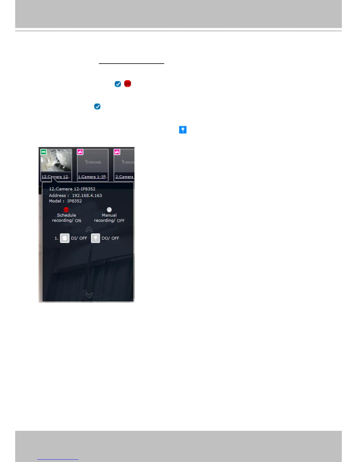 For a camera that is not performing a continuous recording, you can click on the Manual
