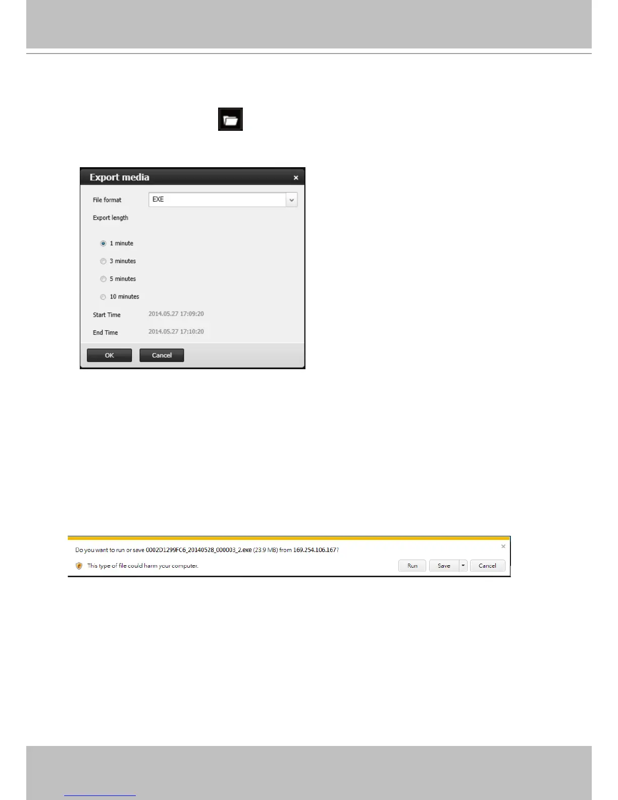 4. Select an export length of video by 1, 3, 5, or 10 minutes. The actual length can be longer