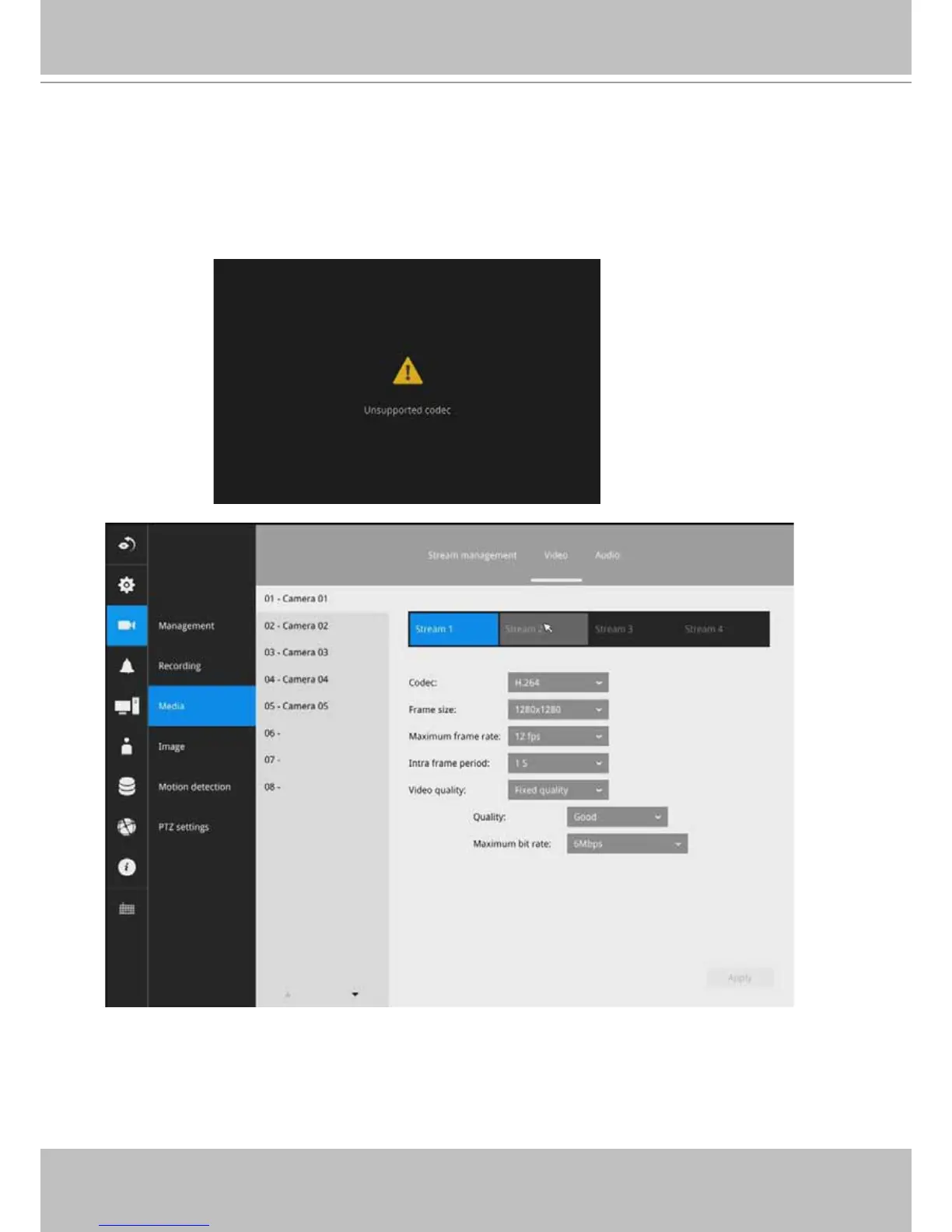 The default live view receives a camera's stream #1. If a camera's stream #1 is congured using