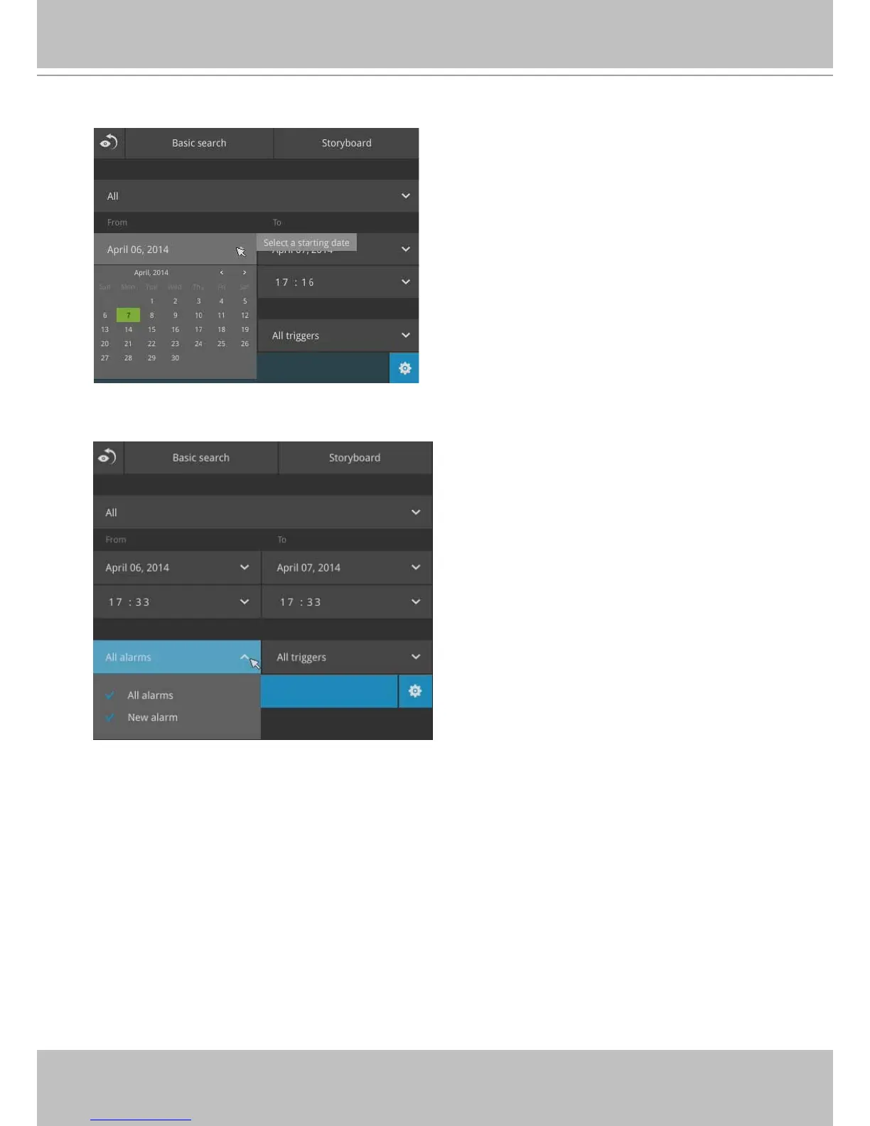 You can then specify the start time and end time to congure a span of time to be searched.