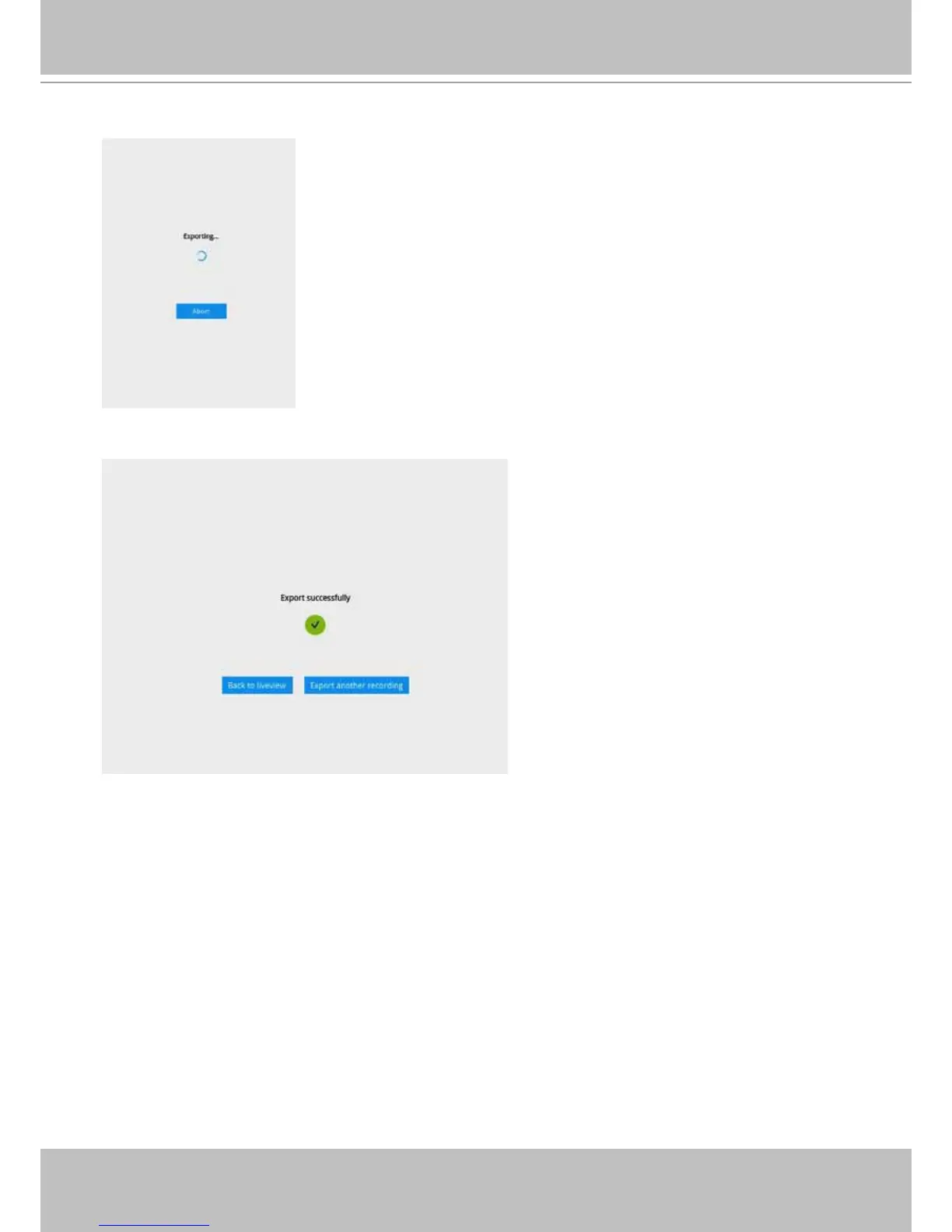 7. When the Export process is done, select to resume another export or go back to the live view.
