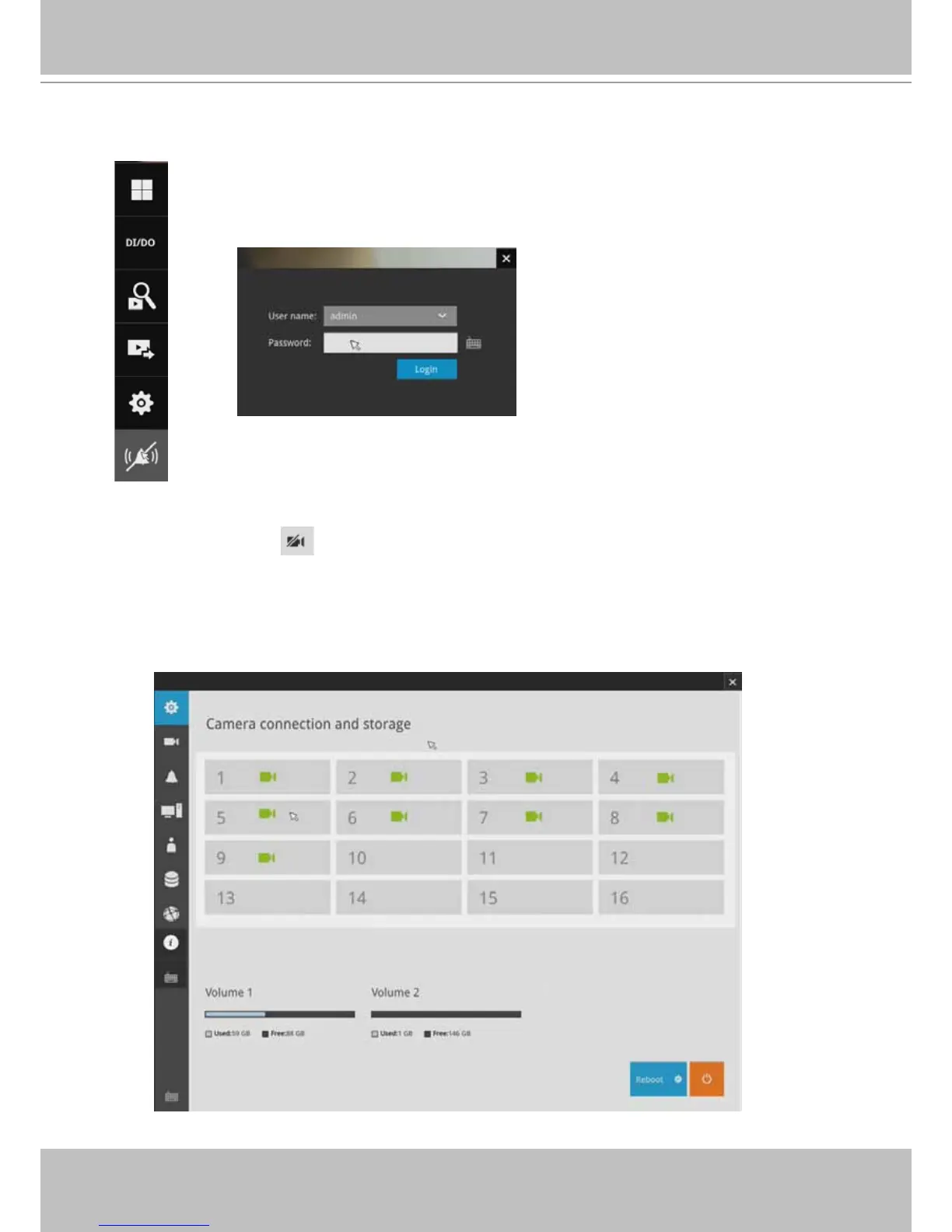storage statuses. An empty position will be left in blank, and a disconnected camera will
