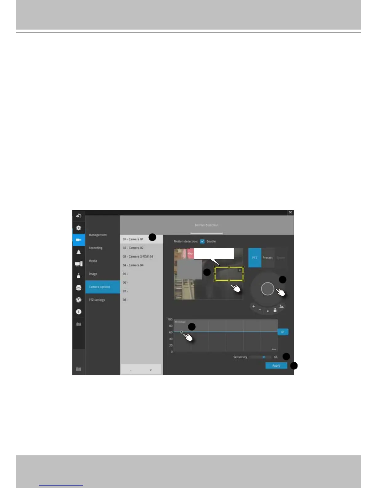 2. Use the PTZ panel to move to a eld of view where you want to place a detection
