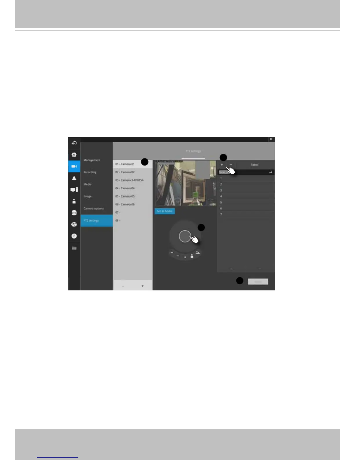 2. Use the PTZ panel to move to a eld of view where you want to designate as a