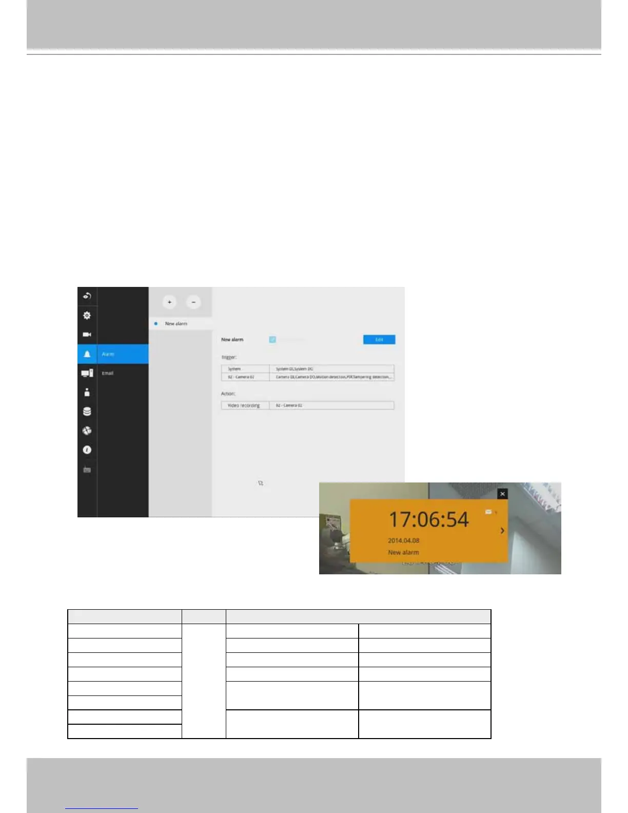 can be accommodated in the NVR system's alarm settings. These events will then be reported