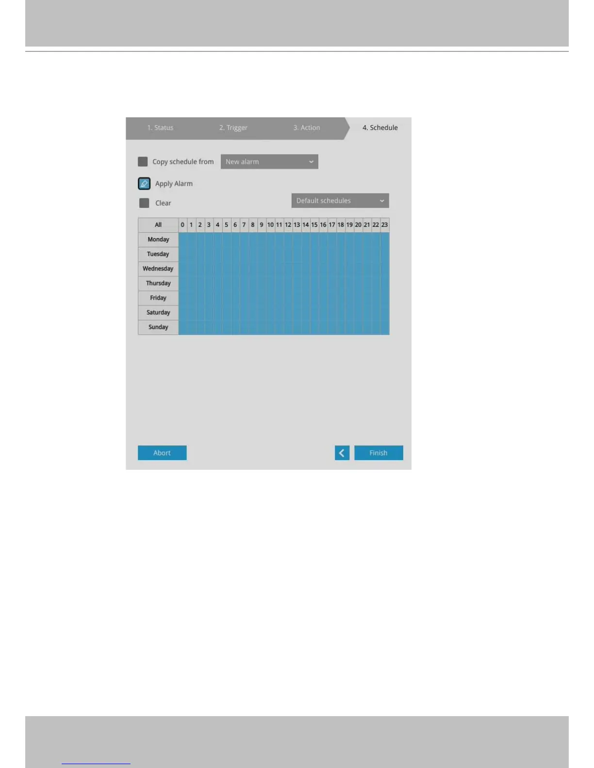 5. On the Schedule page, you can select to activate or de-activate alarm triggers throughout a