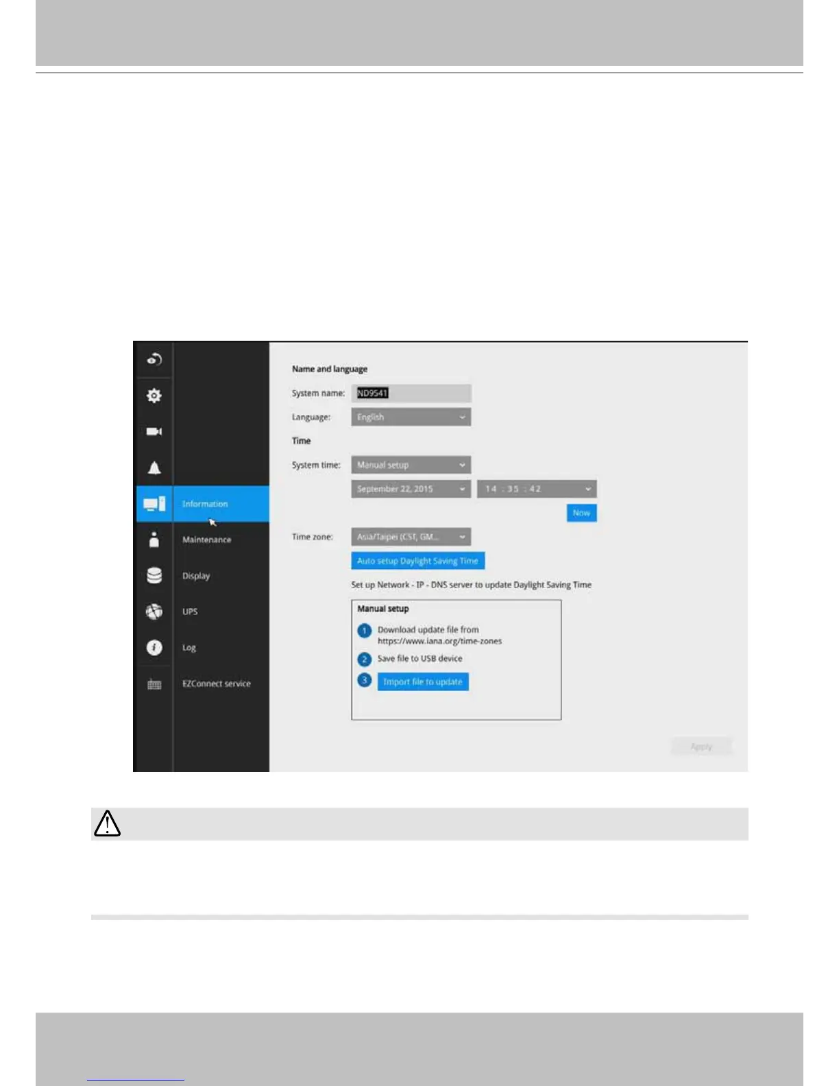 Note that if NTP time server conguration (Auto) is preferred, the system will automatically