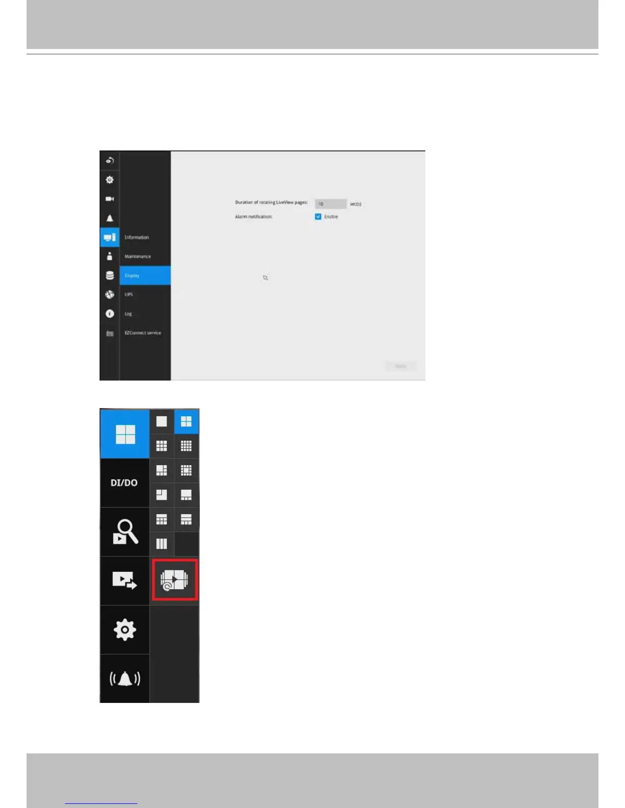 On this page, you can congure the system to consecutively display (rotate) cameras' view cells