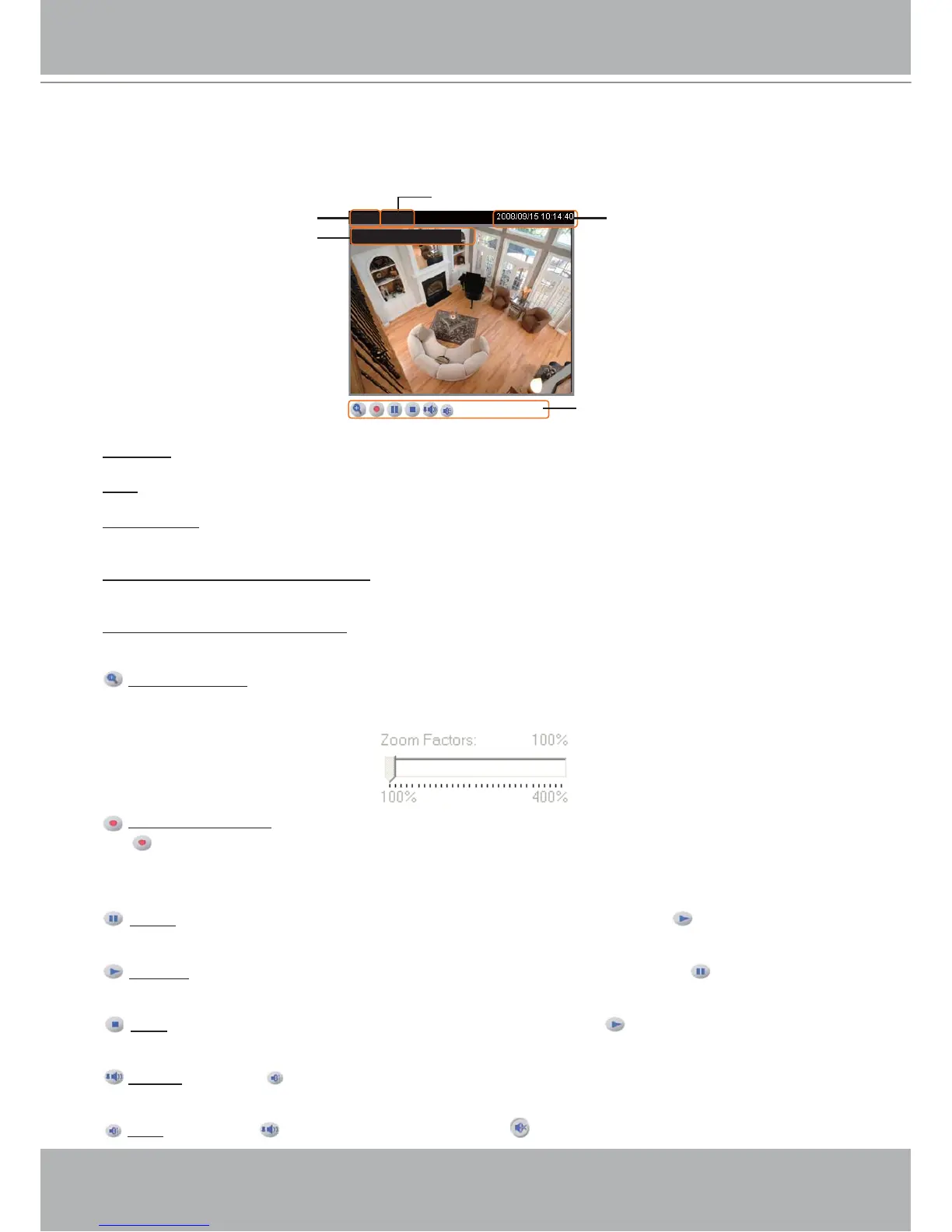 Stop: Stop the transmission of streaming media. Click the Resume button to continue