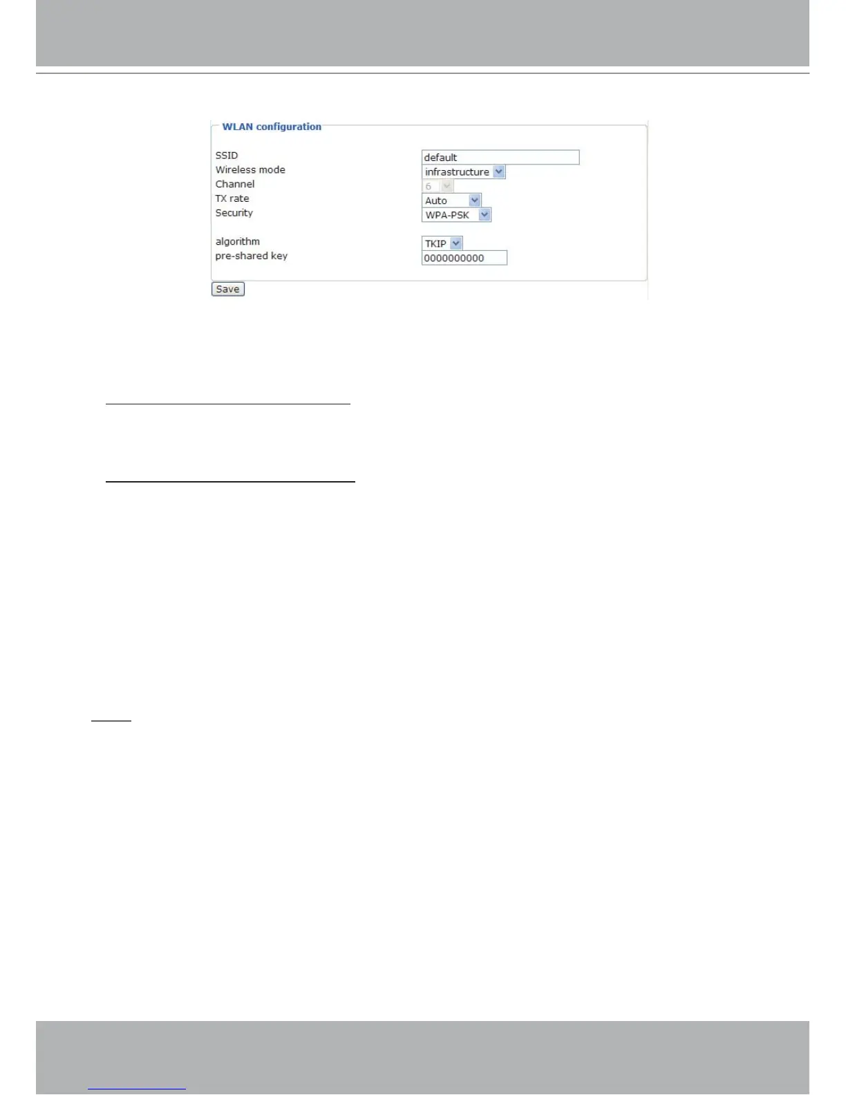 Algorithm: Choosing one of the following algorithm for WPA-PSK and WPA2-PSK modes.