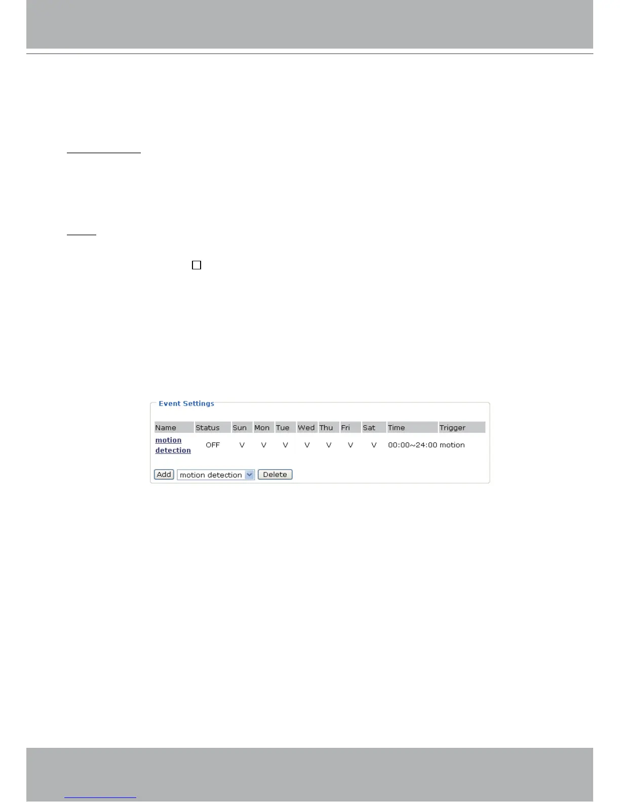 Action: Also referred as the effect, defines the action to be performed by the Network Camera when the