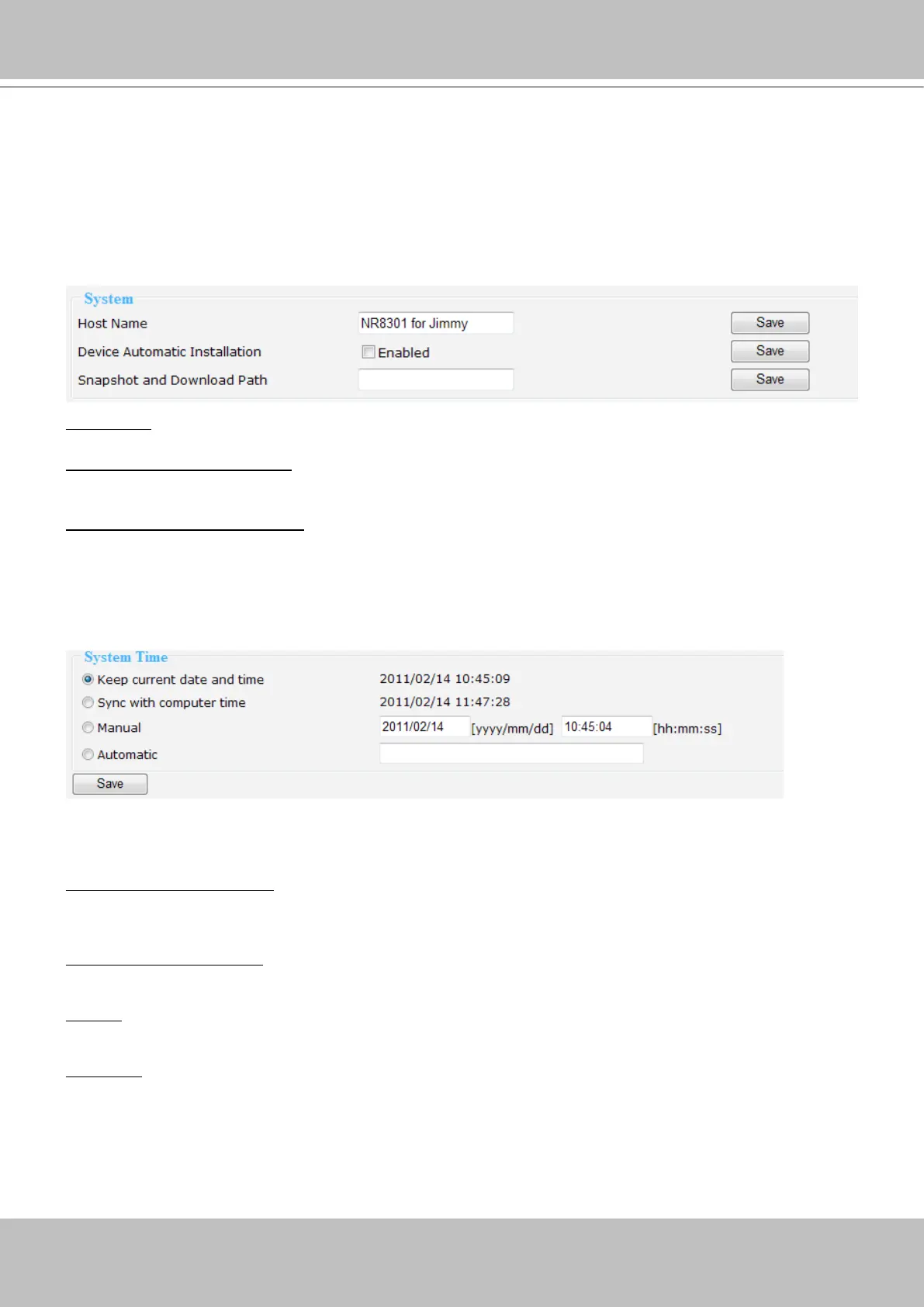 This page allows Administrator to congure the system settings for the Network Video Recorder,