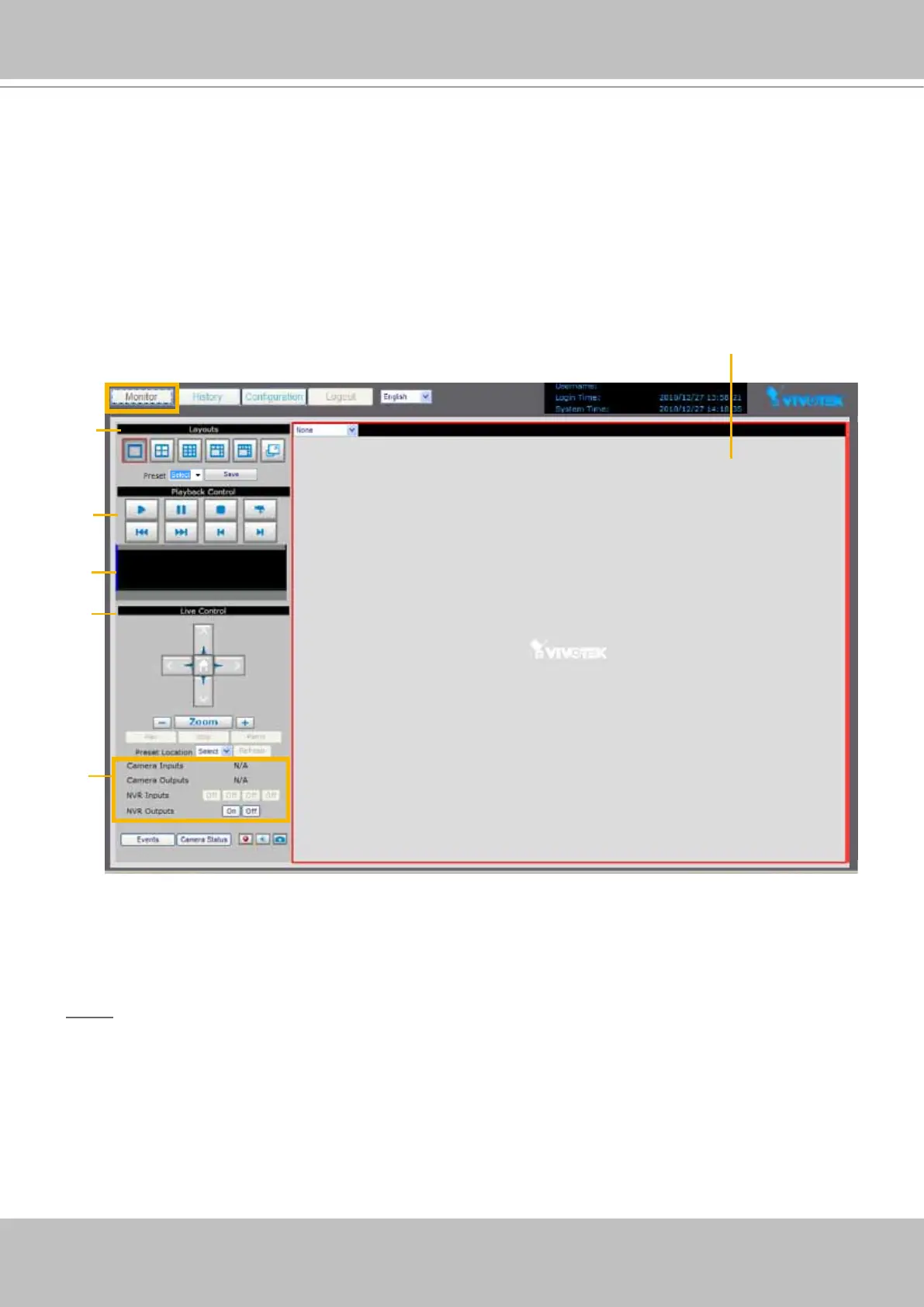 ■ Following is the Monitor page (NR8301) without connected cameras.