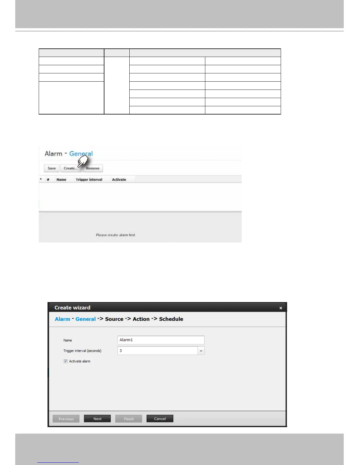 2. The Create Alarm wizard window will prompt. You can manually enter a name for the current