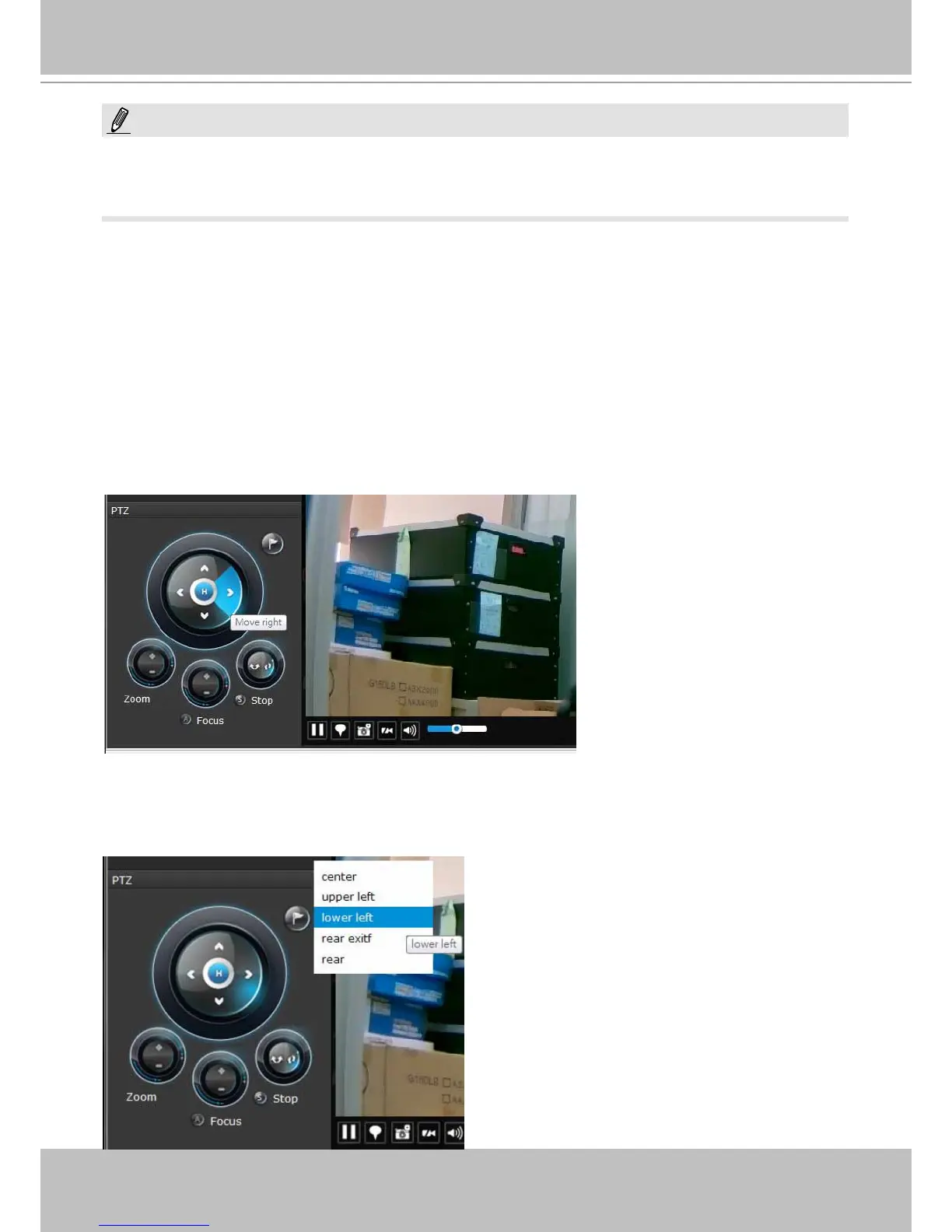 With a PTZ camera, the buttons on the PTZ panel become functional when you mouse over