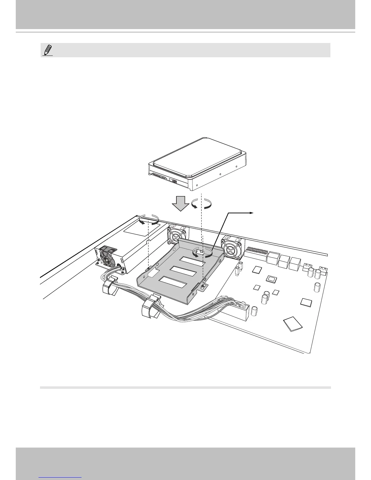 6. Secure the hard drive to the bracket by driving screws from the sides.