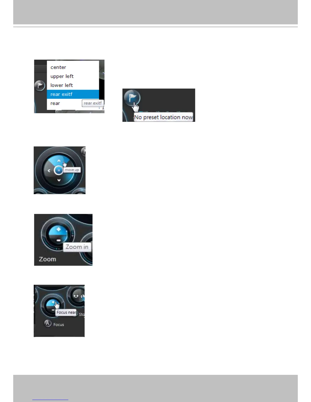Pan/Tilt controller: A mouse hover over the arrow buttons activates the arrow button. Use the